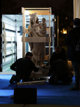 As the time approaches for completion of the work caused by the fire on April 15, 2019, the statue of the Virgin and Child will be reinstated in the cathedral. Prior to this, a torchlight procession will take a replica of the statue from the church of Saint-Germain-l'Orthodoxe to the forecourt of Notre-Dame de Paris cathedral, where Bishop Laurent Ulrich will perform a blessing. For the bishopric, the return marks the renewal of the building's dedication to the Virgin Mary.