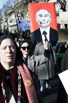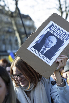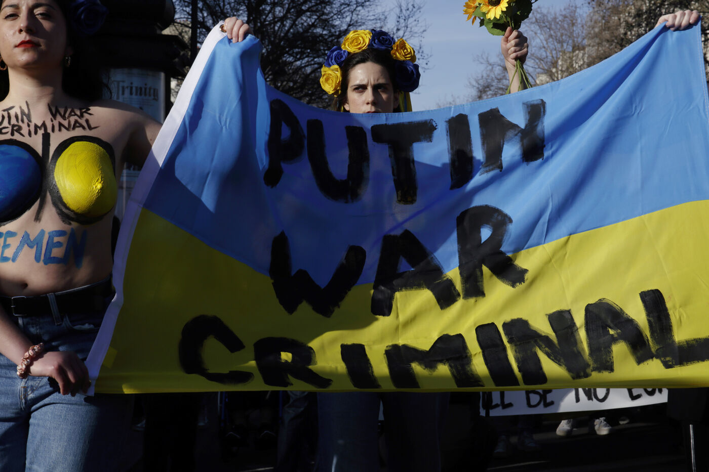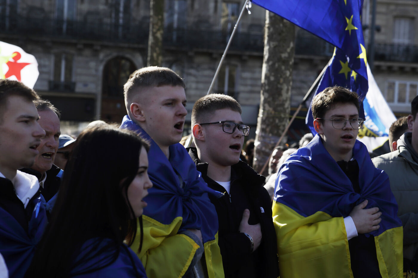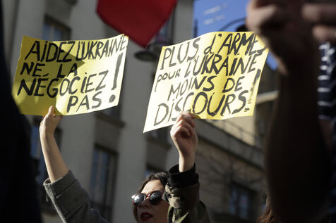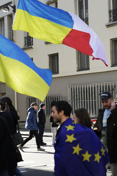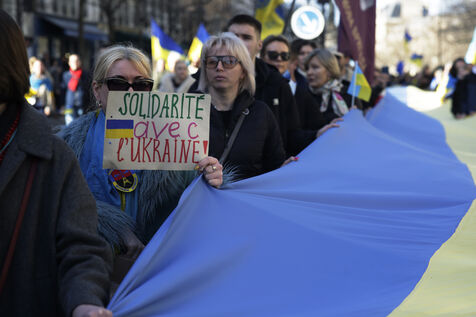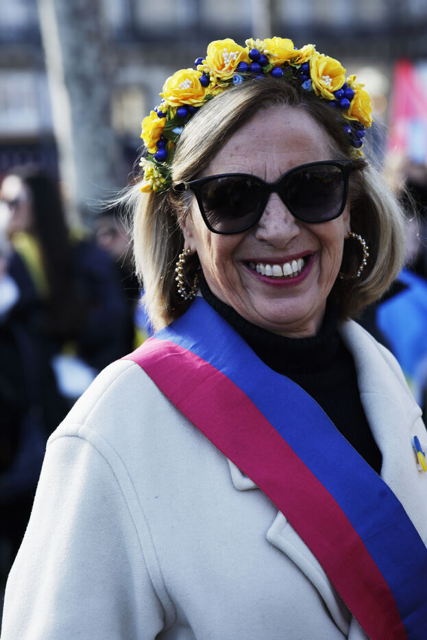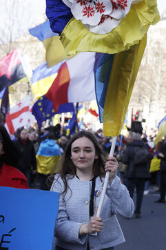 The Paris demonstration was attended by 3,500 people, according to the Prefecture de Police. The procession set off unfurling a 260-meter-long Ukrainian flag. The Femen feminist movement was present to mark the anniversary and denounce the situation with a banner: "If Russia stops fighting, there will be no more war. If Ukraine stops fighting, there will be no more Europe."The procession headed for the Place de la Bastille, where it was dispersed and political figures took the floor.