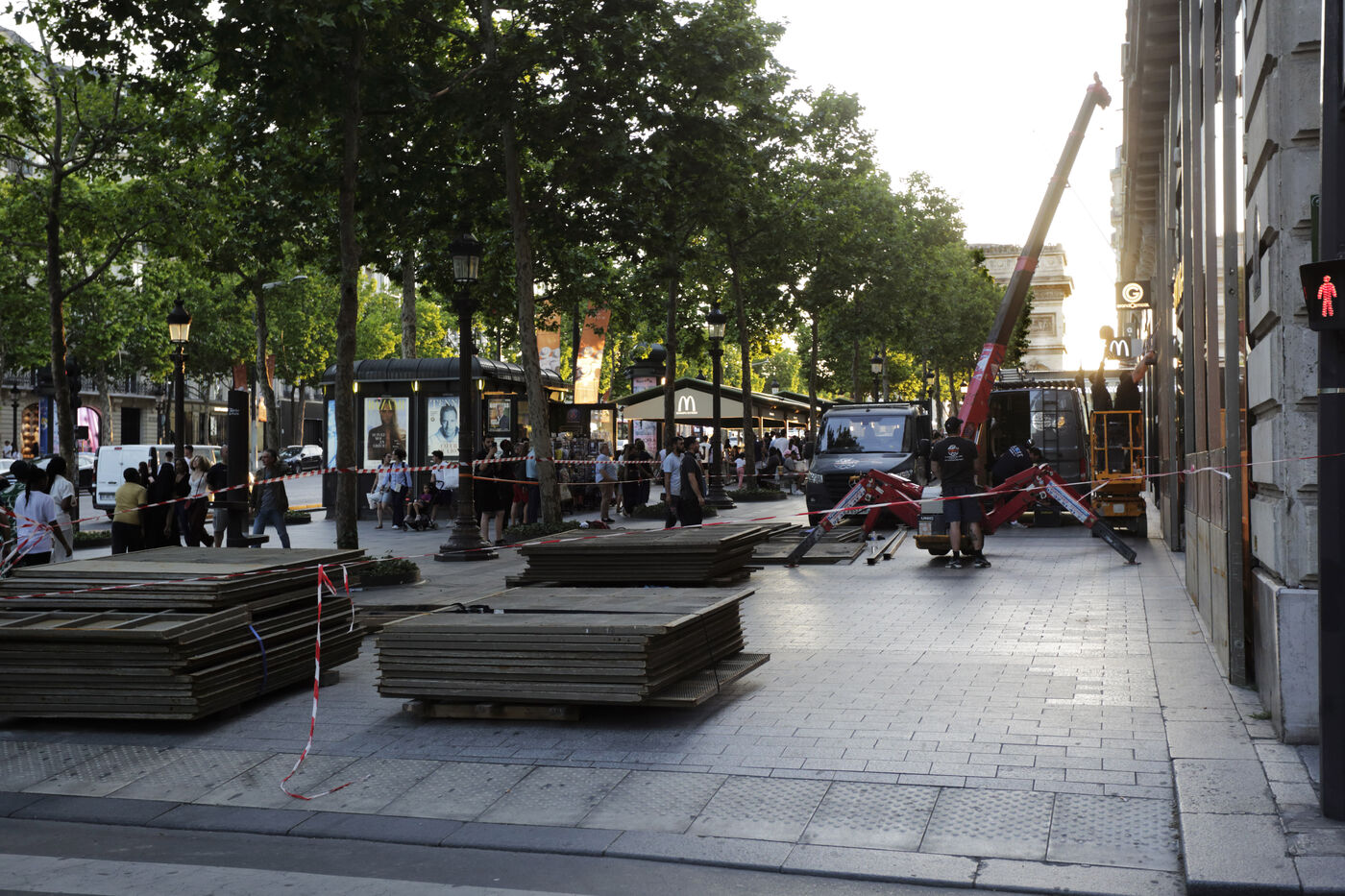 The Champs-Élysées are being secured in anticipation of the upcoming festivities