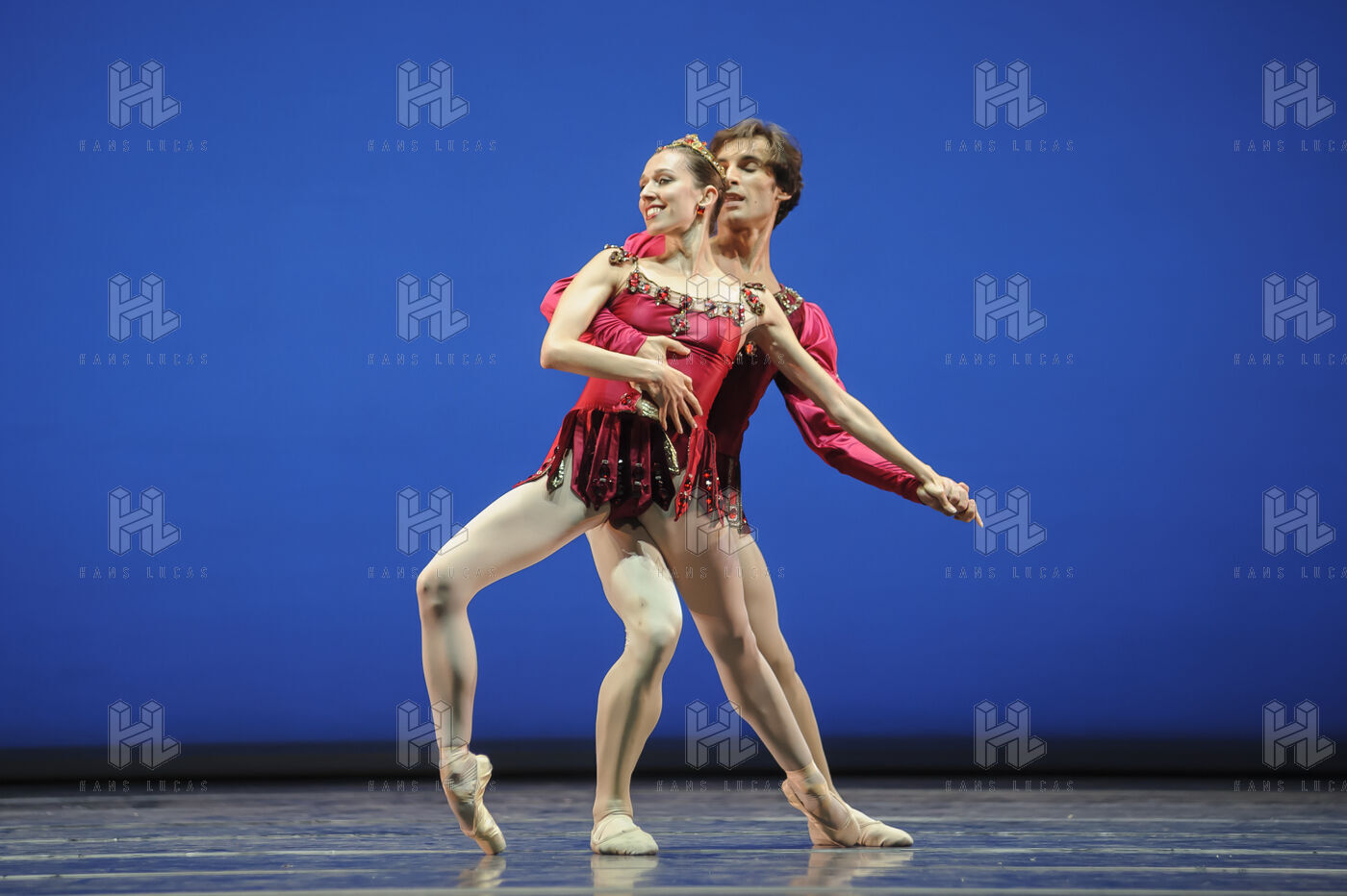 Nina Polakova and Mihail Sosnovschi from the Wiener Staatsballet led by Manuel Legris (Paris Opera Ballet Etoile) performing RUBIES, the 2nd part of JEWELS by George Balanchine at Theatre du Chatelet during the dance festival Les Etes de la Danse in 2013.