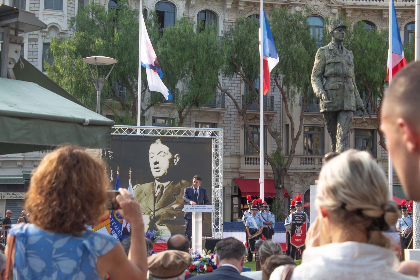 Commemoration of the appeal of General de Gaulle and speech of Christian Estrosi, on the Charles de Gaulle square in Nice.