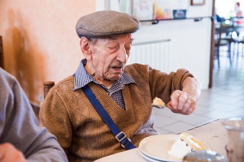 Manger, ce geste qui pour beaucoup n'a plus aucune valeur, a, pour les personnes vivant à la Maison des Roses une importance particulière. Le repas du midi est le moment ou elles sortent de leur chambre. L'excuse qu?elles ont pour se retrouver ensemble, la raison pour laquelle elles choisissent de mettre un joli pull le matin.