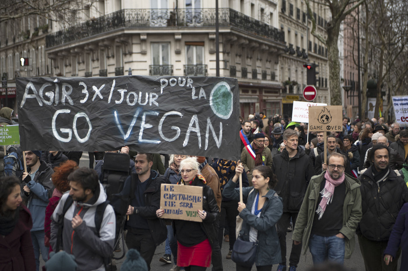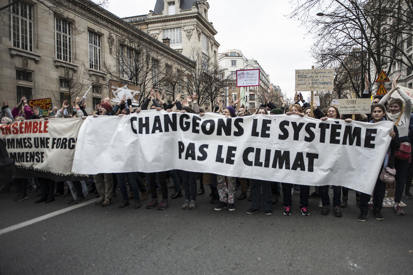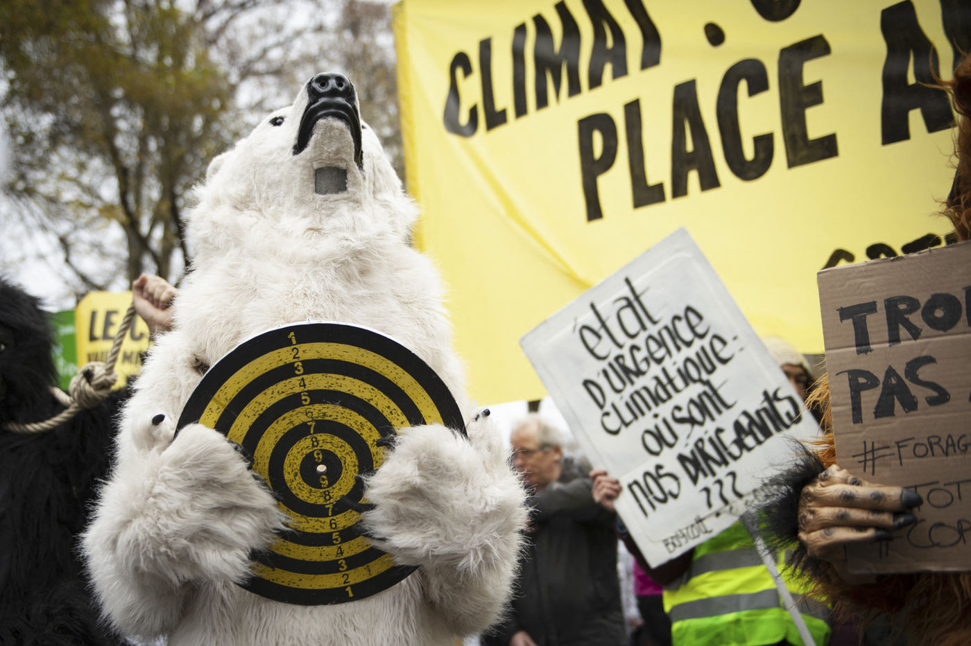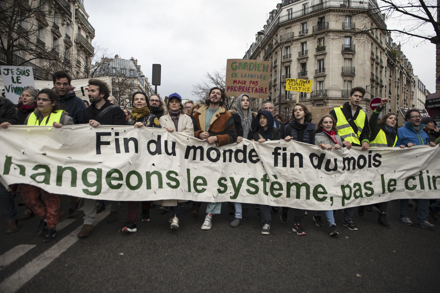 Manifestation pour le climat pendant la COP24. Plus de 17 000 militants écologistes (selon la police) et 25 000 (selon les organisateurs) - rejoints par quelques Gilets jaunes - ont manifesté pacifiquement à Paris samedi 8 décembre.