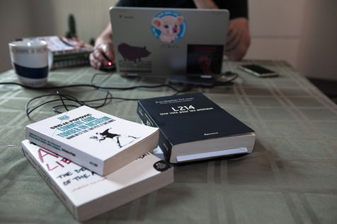 He becomes a vegan in 2014. The transition is difficult for him, so deeply rooted in his habits, as well as for those around him. He must learn to gradually change his diet. He experiences a dissonance between his thoughts, which refuse to eat animals, and his appetite for meat and cheese. In the same year, as a volunteer, he gets closer to vegan associations, including L214. While working as a logistics manager in the event industry, his life changed in 2016 when L214 hired him full time. He makes new friends and in 2018 he meets Charlotte, who is also vegan. They both dream of nature and want to leave Paris. They do so in 2019 and get married the same year.