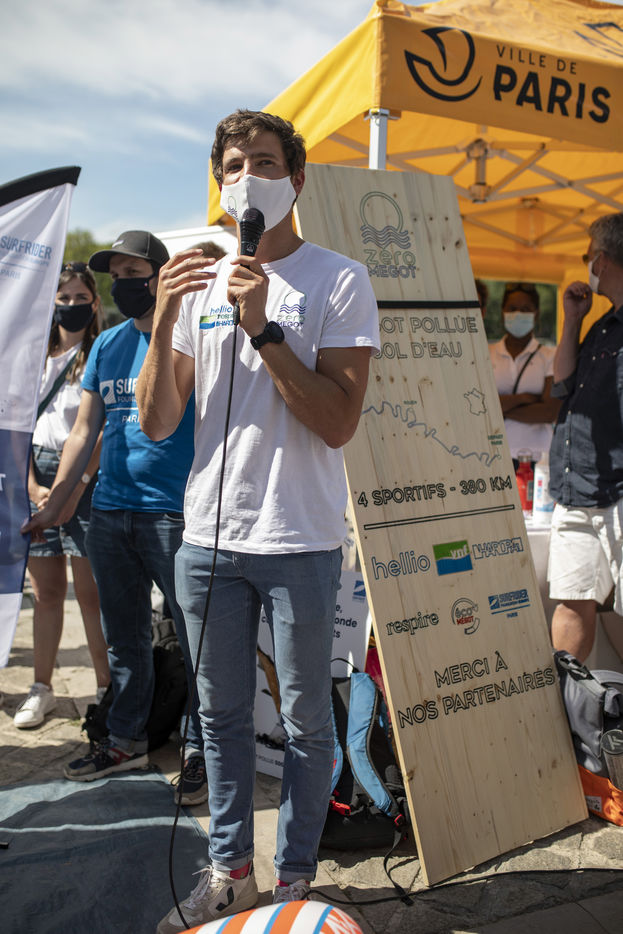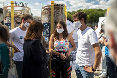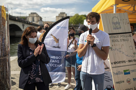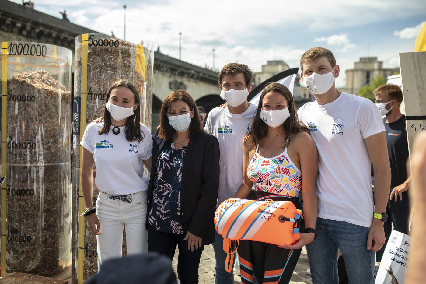 Anne Hidalgo, the mayor of Paris, met with the team 0 Megot, who this morning set a world record of a collection of cigarette butts, collecting more than 850 000 in 3 hours in the streets of Paris, with the help of more than 1000 volunteers. The swimmers then set off for their adventure, swimming the 380 kms separating Paris from Deauville, retracing the symbolic journey of a cigarette butt thrown in the streets of Paris, and ending in the Atlantic ocean.