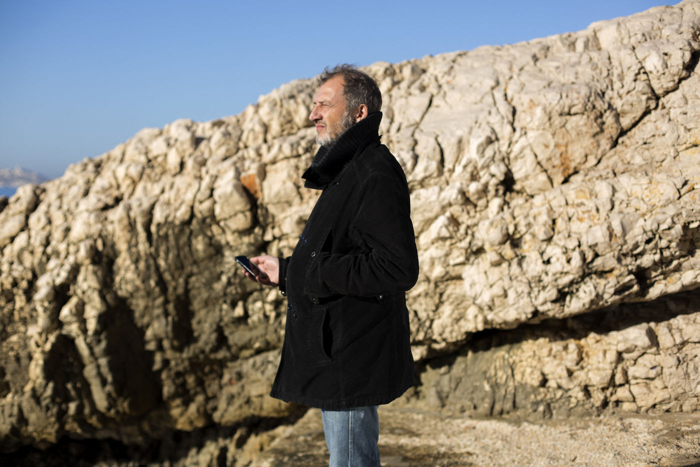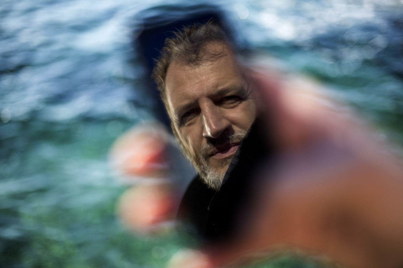 Portait d'Olivier Bertrand à travers l'un de se téléphone. Il a refusé de donner ses codes au policiers turcs qui lui proposait la liberté en échange de ses contacts. L'oeuvre de Yachar Kemal "Memed le Mince" a accompagné Olivier Bertrand. Elle lui aussi permis d"écrire ses observations lors de ces jours de détention en Turquie. 16 Novembre 2016 à Marseille, France