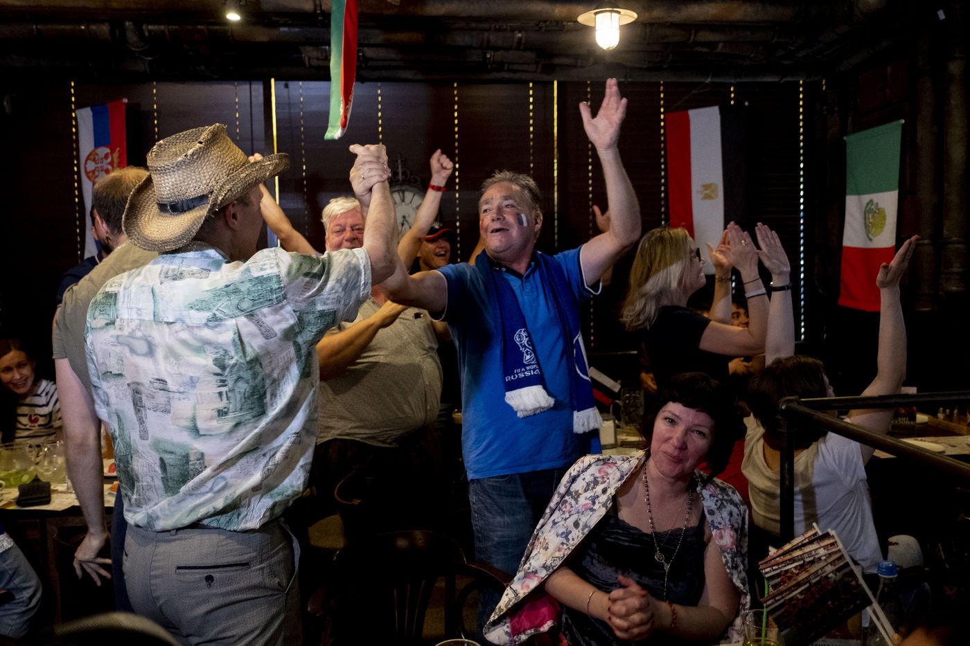 Dans le Gastrobar dans le sud ouest de Moscou, les expatriés français en Russie sont venu regarder les huitièmes de final de la coupe du Monde de Football 2018 qui les opposent à l'Argentine. Après un match complètement fou, les français ont réussi à garder leurs avances et à gagner pour s'offrir les huitièmes de finales.