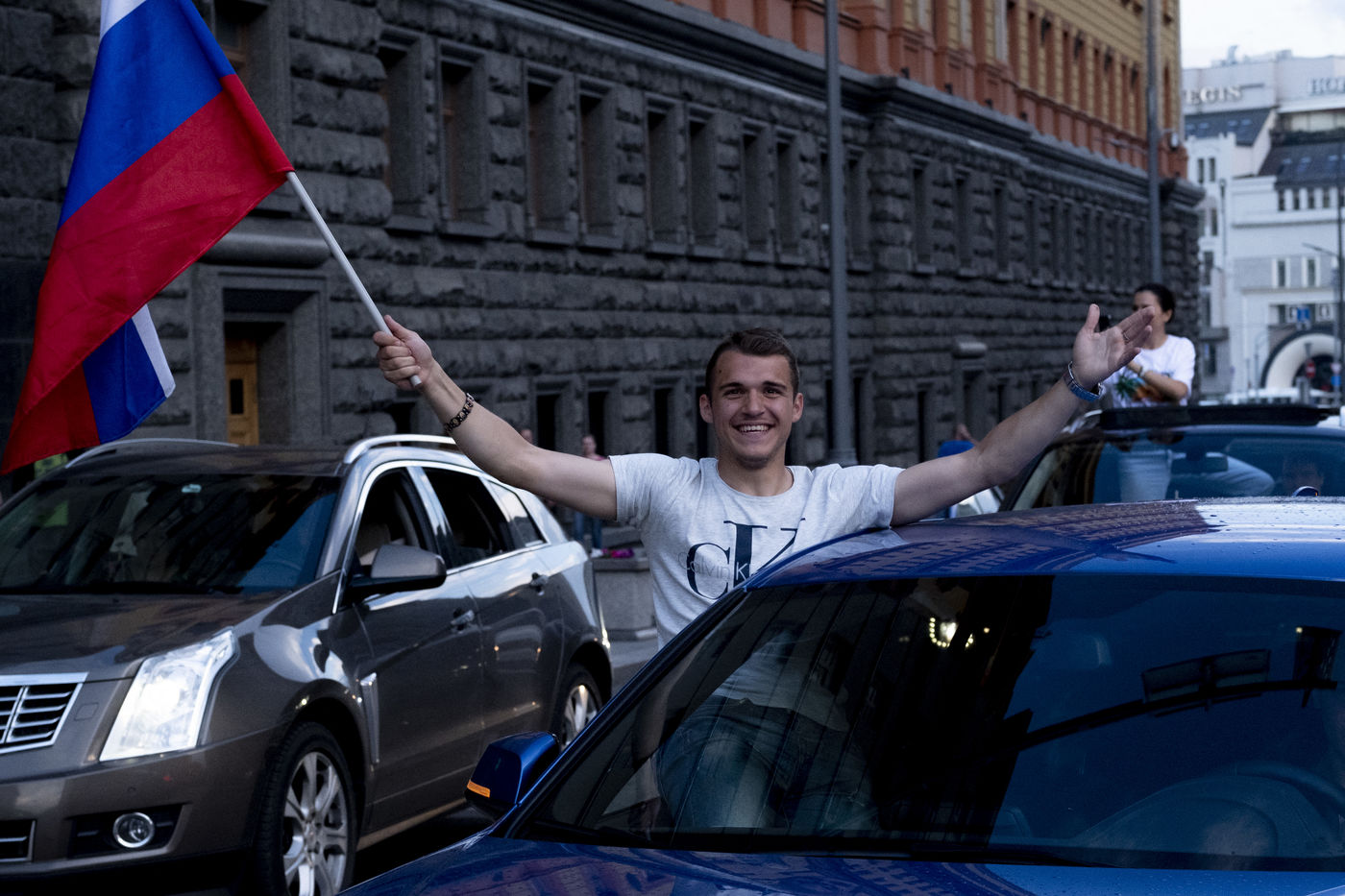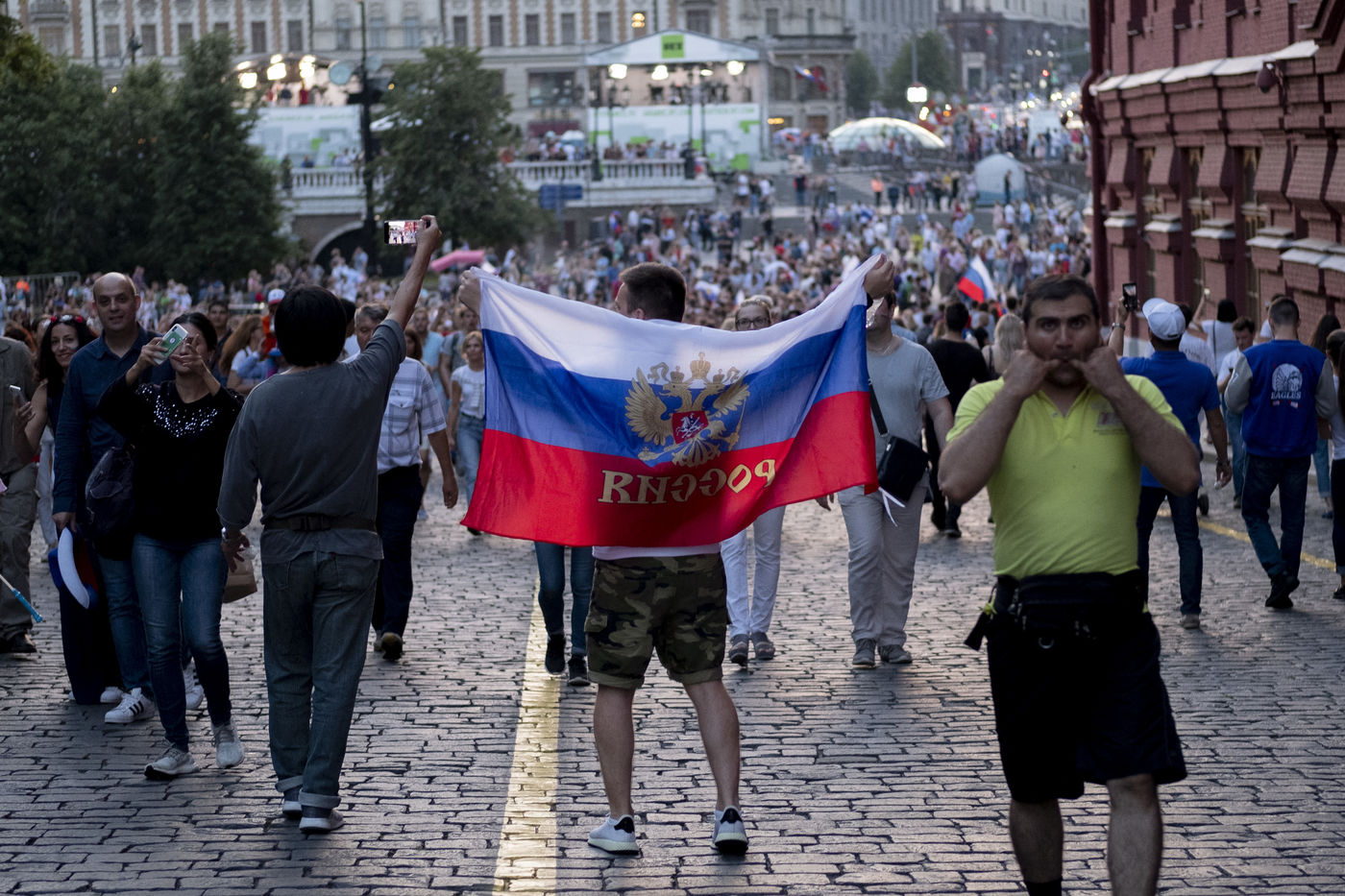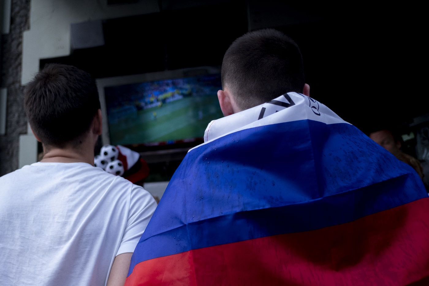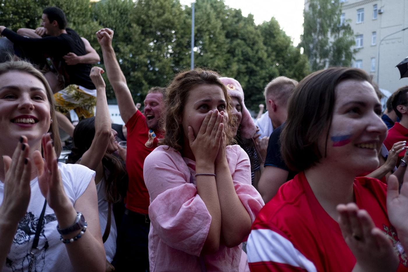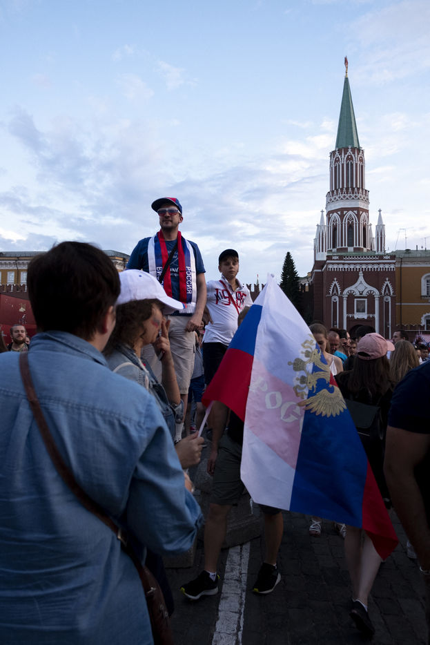 In the center of Moscow, while the fan zone was closed due to storm, Russian supporters gather in the bars of the city. At Ligag Pap, no one dreams and some are already resigned to Spain's victory. After ten minutes of play, Spain opened the scoring, leaving no doubt about the future result. Against all odds, the match was followed by a exhausting and even overtime match, giving an unexpected and jubilant victory for Russia. Resigned to an announced defeat, Russian supporters experienced a victory they considered impossible. By hundreds of thousands of people, they took to the streets to celebrate this unforgettable evening.