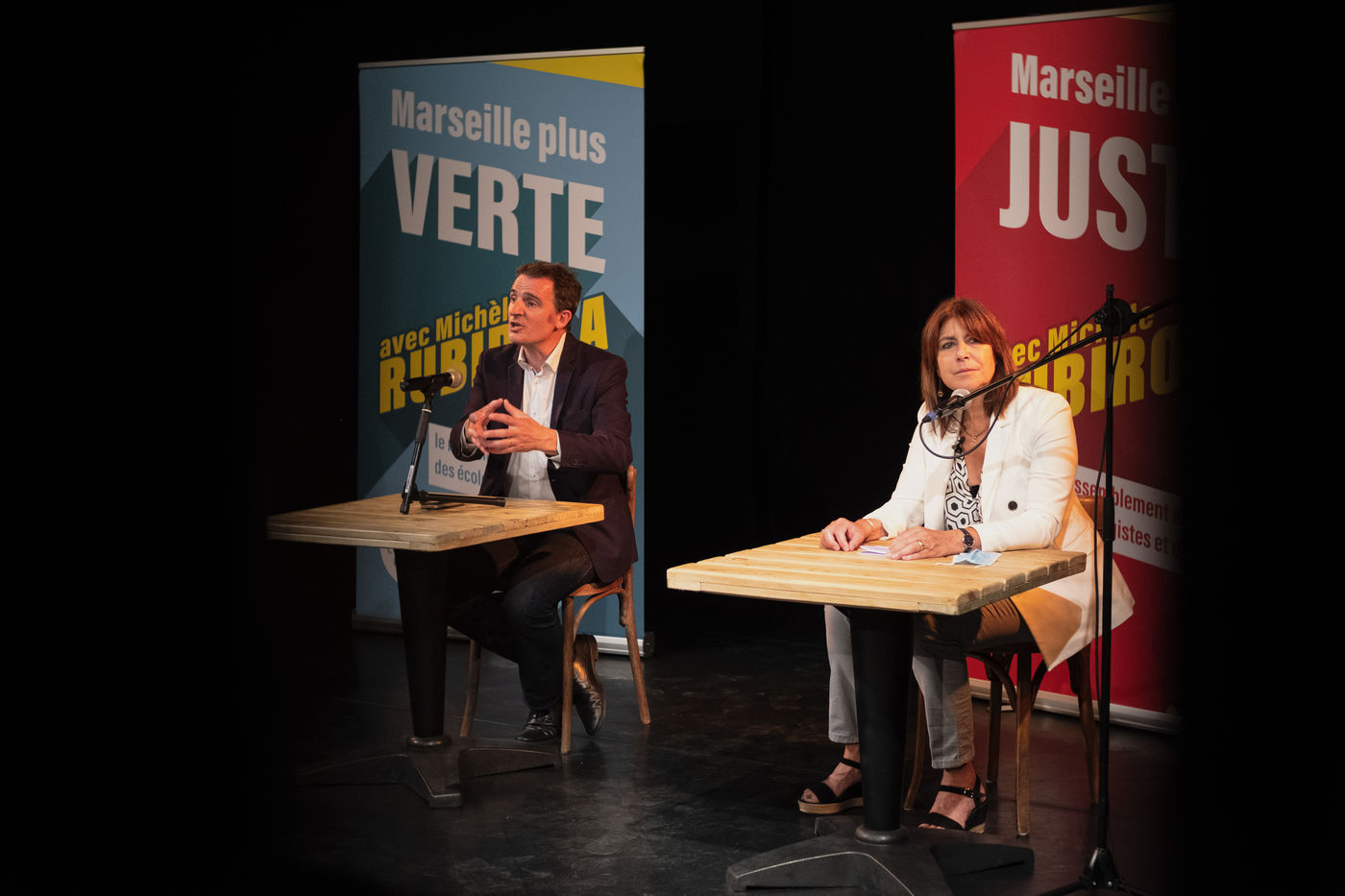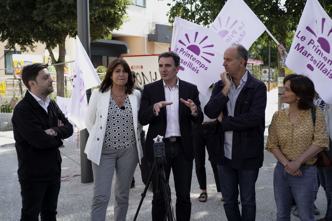Le 12 juin 2020 a Marseille, Michèle Rubirola candidate au élection municipale de Marseille pour le printemps marseillais reçoit Eric Piolle, maire écologiste de Grenoble. En présence de Sophie Camard, Sébastien Barles, Benoit Payan, ils font le point lors d'une visite du quartier Cinq Avenues et Chartreux suivit d'une conférence de presse au theatre des chartreux.