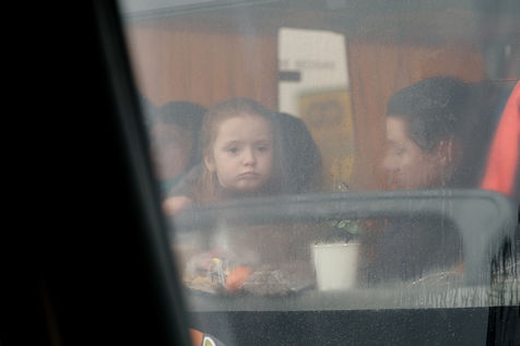 Ils n ont sur eux qu un petit sac d affaires et leurs documents, ils fuient et ils sont des milliers. C est le premier contact pour Youri et Sacha avec une realite qu ils ont jusque-la vecu a distance. En tres peu de temps, le camion est vidé à Lviv, il faut comprendre si cela concerne l alimentaire, le couchage, le medical ou la protection militaire. Ce convoi organisé par l'eglise n'est pas en reste, les pretres se rendent vers l est pour distribuer l aide qu ils ont recue des habitants, des ressortissants ukrainiens et des organisations internationales. Dans un ancien orphelinat transformé pour accueillir les réfugiés, Tania, son fils Artom et sa mère Lucie on vécu l'enfer au quotidien s à 100 km de l'ouest de Kiev à Zhytomya.