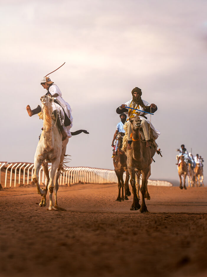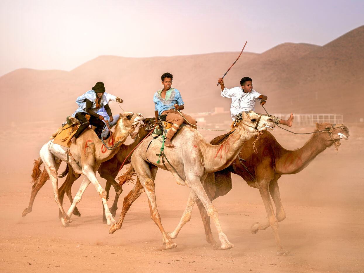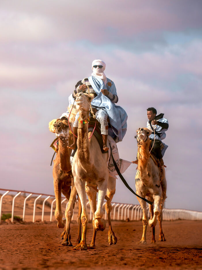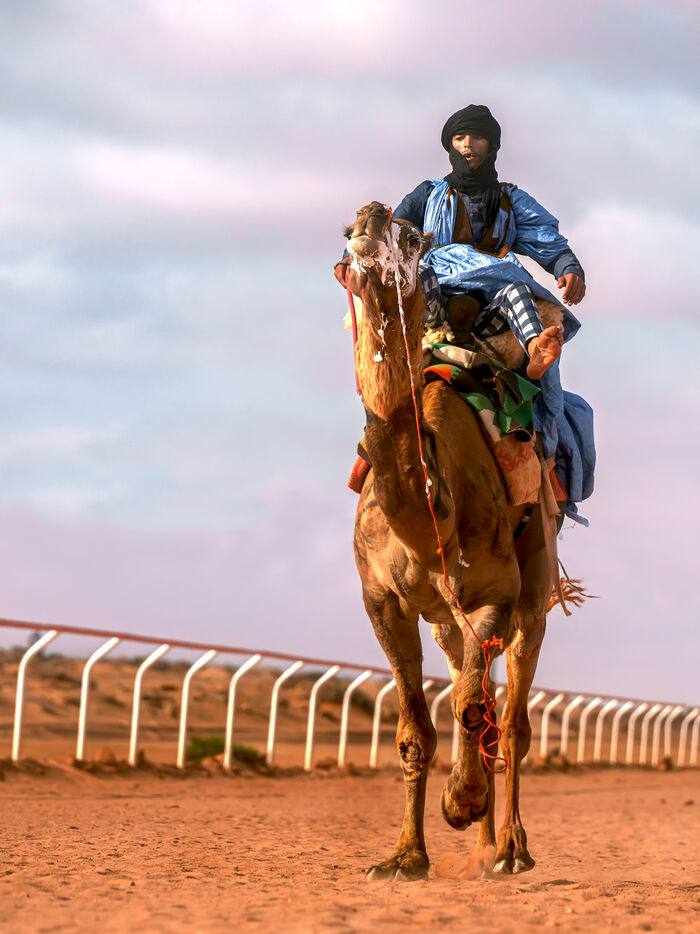 Camel racing, a social practice and festive heritage, is a popular tradition in Saharan communities. Preparing a racing camel involves several steps. Animals are selected based on their type, origin, and age, and are fed a specific diet. They train in groups on the racecourse and are trained to participate in competitions. The races take place on camel tracks under the supervision of specialized committees. There are usually between fifteen and twenty camels competing in each race, and the distance to be covered is determined according to the age of the animals. Knowledge and skills are passed on through the joint efforts of community representatives, government agencies, specialized centers, the racing federation, and clubs. Children and young people gradually acquire the knowledge and skills associated with this practice through observation, simulation, and oral expression. Camel racing is a fundamental aspect of the nomadic way of life, but also a source of inspiration and creativity in poetry and song. Its importance and longevity within Bedouin society are linked to the predominant role of camels in desert areas.