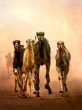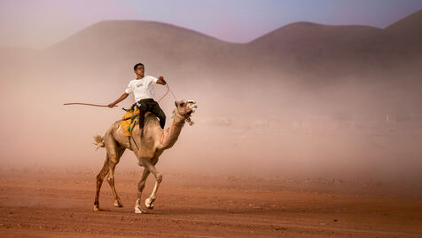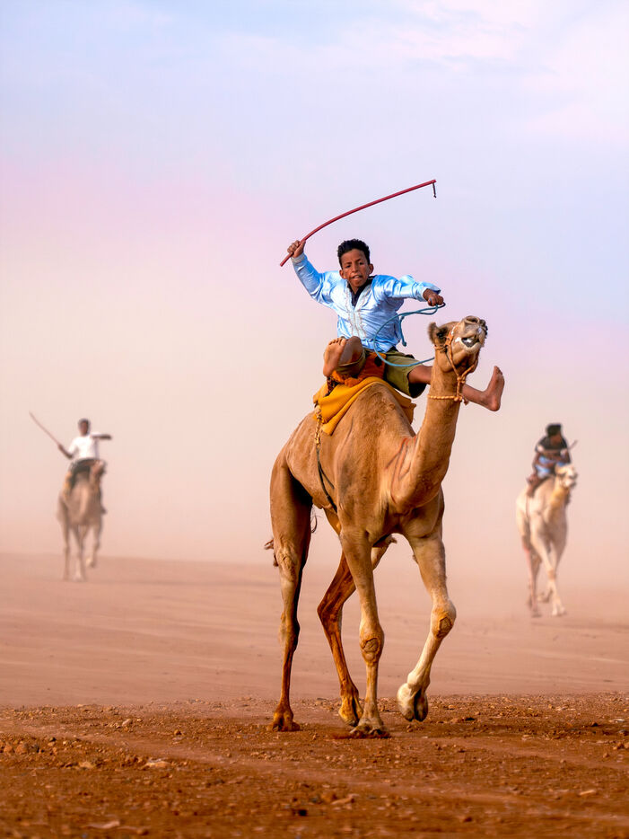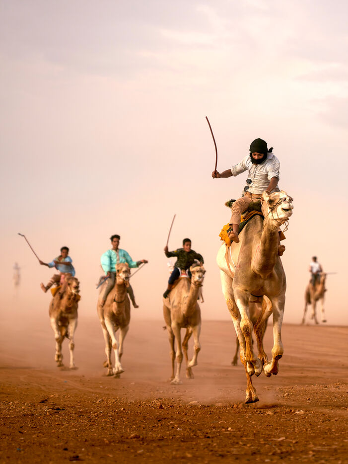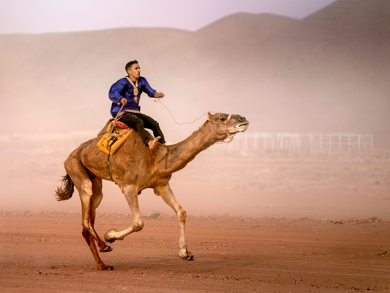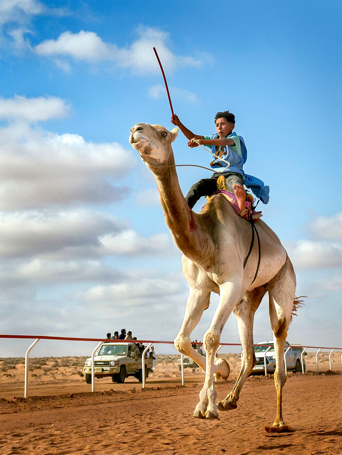 Camel racing, a social practice and festive heritage, is a popular tradition in Saharan communities. Preparing a racing camel involves several steps. Animals are selected based on their type, origin, and age, and are fed a specific diet. They train in groups on the racecourse and are trained to participate in competitions. The races take place on camel tracks under the supervision of specialized committees. There are usually between fifteen and twenty camels competing in each race, and the distance to be covered is determined according to the age of the animals. Knowledge and skills are passed on through the joint efforts of community representatives, government agencies, specialized centers, the racing federation, and clubs. Children and young people gradually acquire the knowledge and skills associated with this practice through observation, simulation, and oral expression. Camel racing is a fundamental aspect of the nomadic way of life, but also a source of inspiration and creativity in poetry and song. Its importance and longevity within Bedouin society are linked to the predominant role of camels in desert areas.