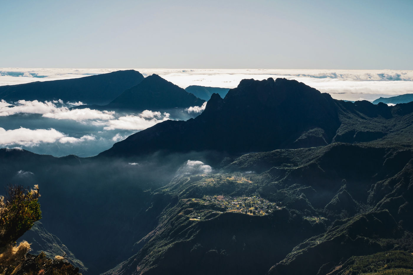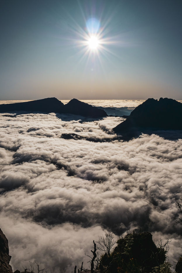 July. A group of hikers decides to get up in the middle of the night to go admire the sunrise at 1h30 of road. It is an insignificant duration in Reunion Island because the roads are often sinuous. We lend ourselves to the game. This day, as most of the other days of the year, the climbing of the sun to the top of the mountains will be breathtaking. The group of hikers will not stop there: it will go then to approximately 3 hours of walk, to the Grand Benare. It is the third highest summit of the island with its 2898m of altitude, and overhangs both Mafate and Cilaos, two of the three cirques of Reunion Island.