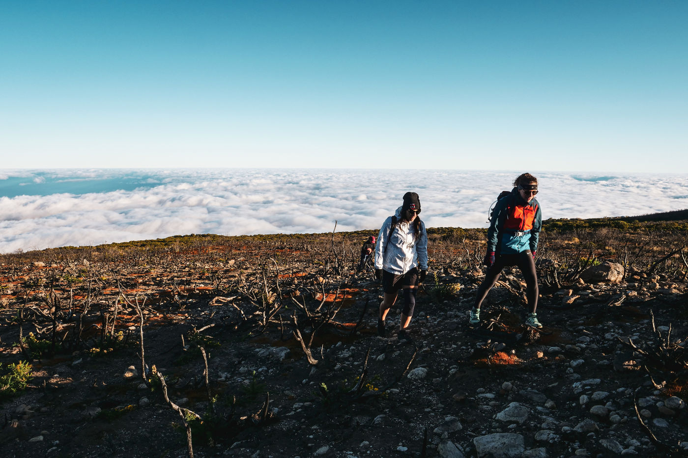 Nous sommes en juillet. Un groupe de randonneurs décide de se lever au milieu de la nuit pour aller admirer le lever du soleil à 1h30 de route. C'est une durée insignifiante à La Réunion car les routes sont souvent sinieuses. On se prête au jeu. Ce jour-là, comme la plupart des autres jours de l'année, l'escalade du soleil jusqu'au sommet des montagnes sera à couper le souffle. Le groupe de randonneurs ne s'arrêtera pas là : il se rendra ensuite à environ 3h de marche, au Grand Benare. Il s'agit du troisième plus haut sommet de l'île avec ses 2898m d'altitude, et surplombe à la fois Mafate et Cilaos, deux des trois cirques de La Réunion.