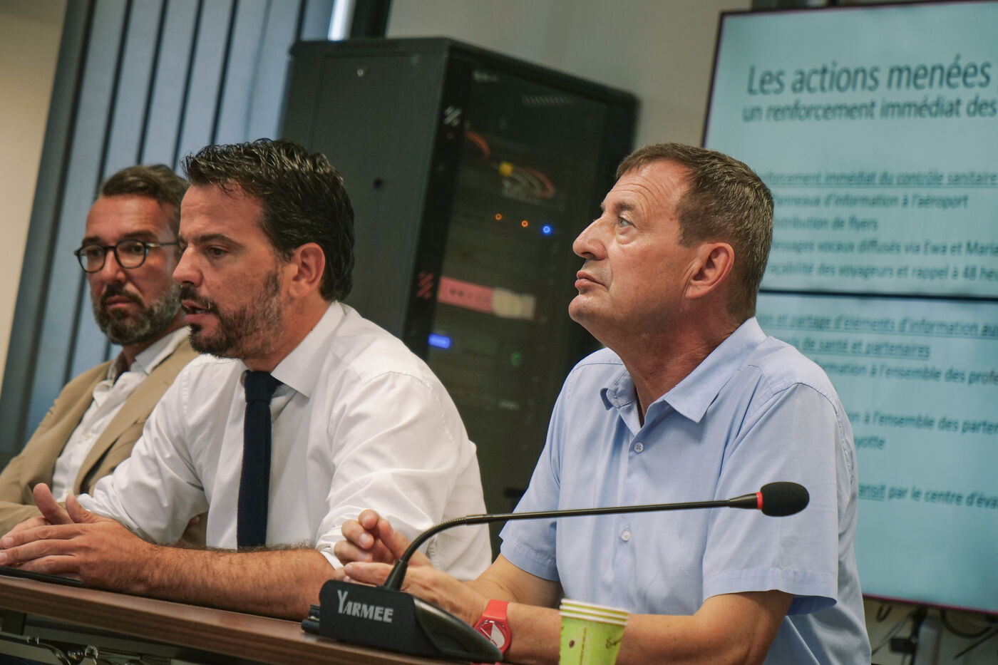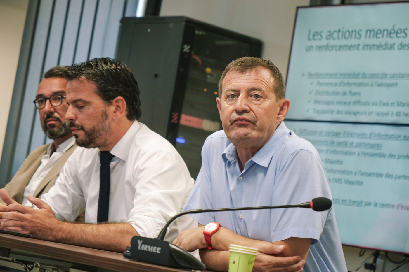 Press conference held at ARS Mayotte to present the response plan to counter the risk of cholera being introduced into Mayotte, with Prefect Thierry Suquet, Olivier BRAHIC, Director General of ARS Mayotte and Dr. Maxime Jean, infectious disease physician and medical advisor to ARS Mayotte.