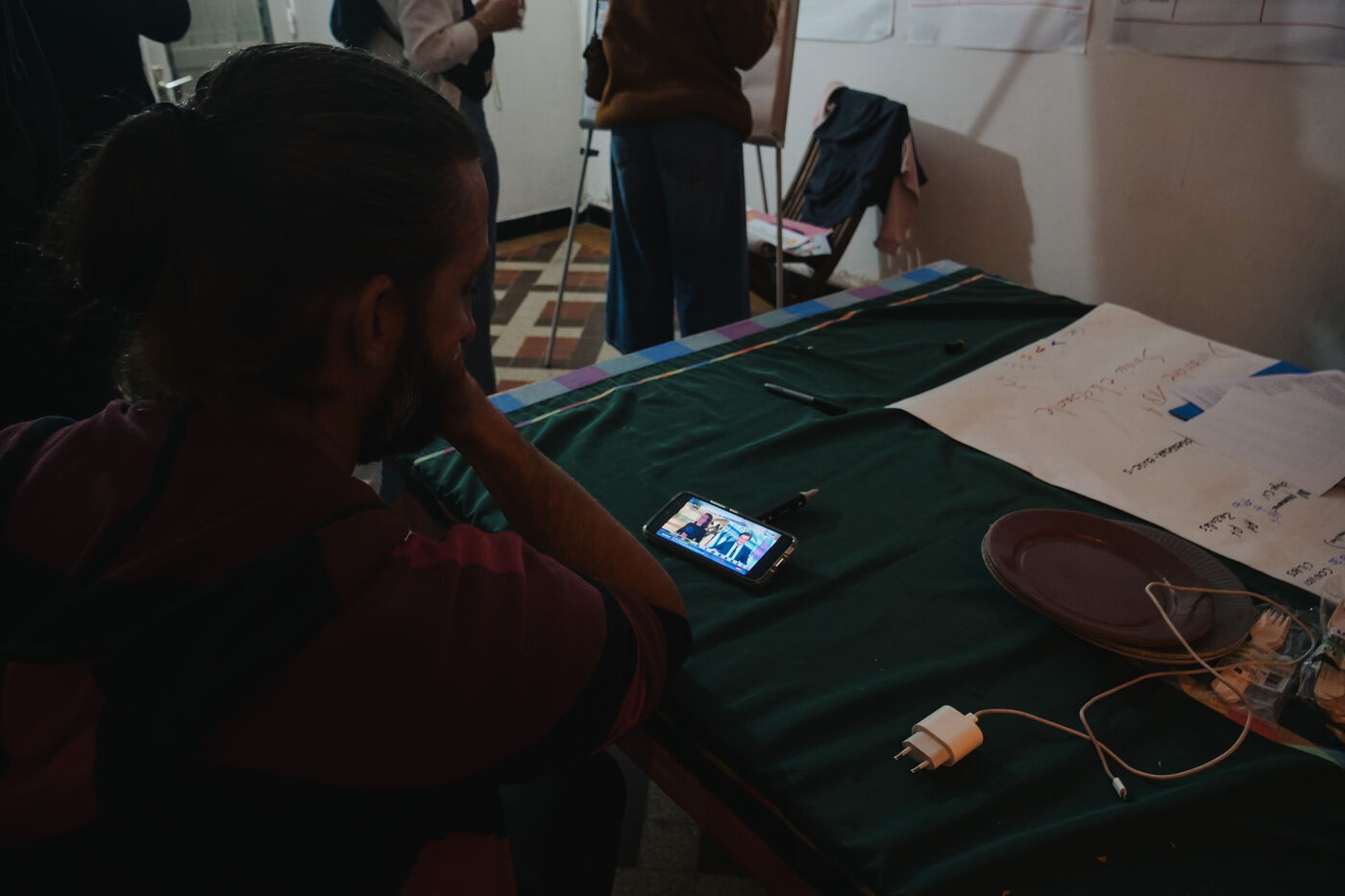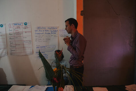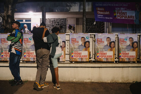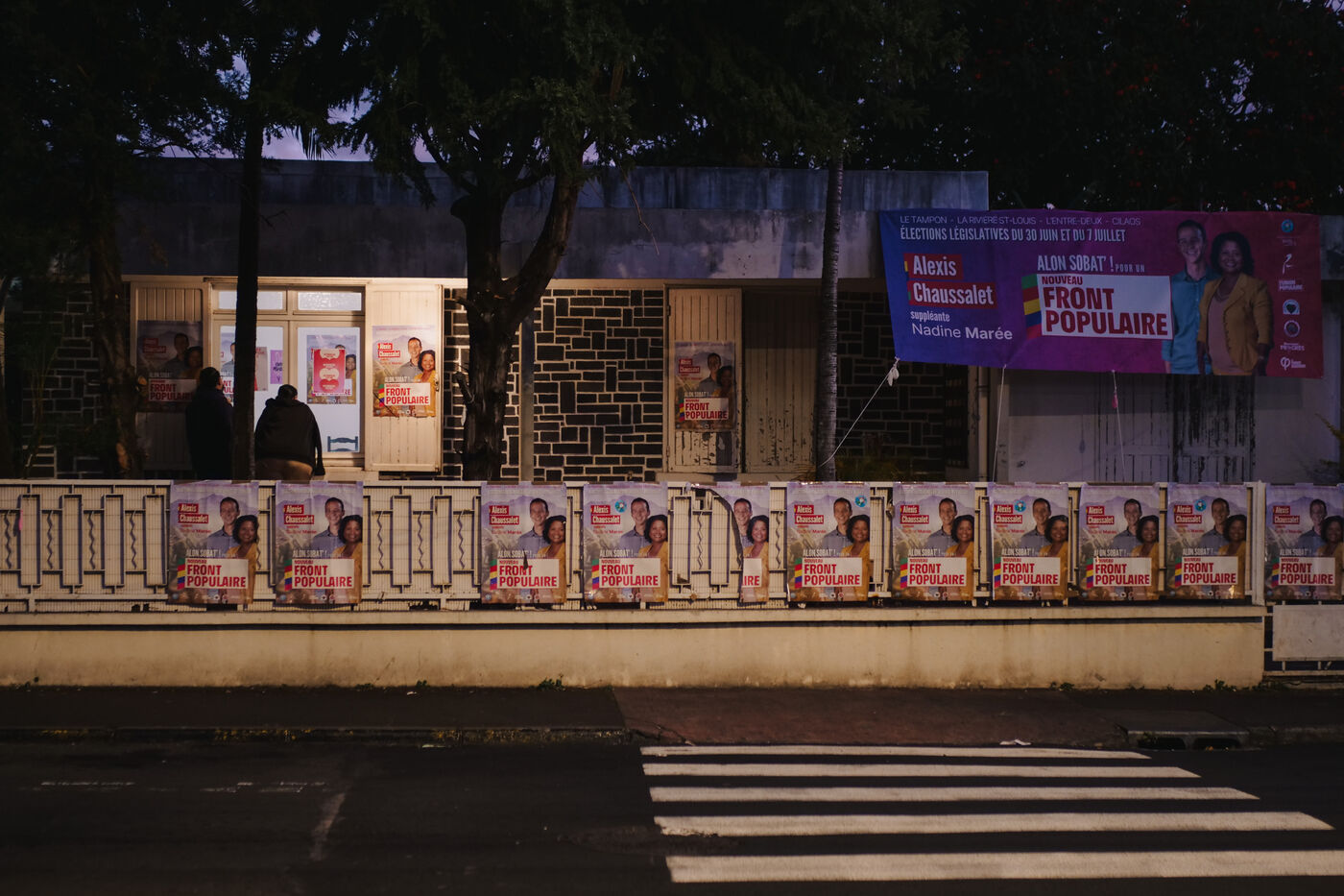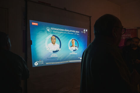 Second tour des élections législatives en France, soirée électorale au QG d'Alexis Chaussalet. Le candidat NFP (Nouveau Front Populaire) de la 3e circonscription à la Reunion, Alexis Chaussalet, affrontait le candidat RN (Rassemblement National) Joseph Rivière. Le candidat RN l'emporte avec 51% des voix contre 49% pour Alexis Chaussalet. C'est la première fois que le département ultramarin envoie un député RN à l'Assemblée Nationale. Pendant que les militants et soutiens se rassemblent dans la pièce principale pour regarder les résultats en direct, le candidat de 31 ans et son entourage proche comptabilisent les résultats qui arrivent au fur et à mesure, bureau par bureau, dans une petite pièce au fond du bâtiment. Les scores sont extêmement serrés. L'ambiance est un mélange d'espoir, d'inquiétude et d'ascenseurs émotionnels.