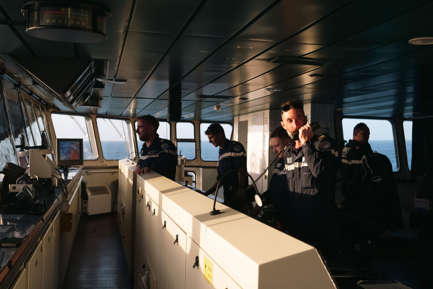 It is time to go home. This fifth and final series aboard the Astrolabe finally reveals a little more of the faces of these sailors, so little exposed during the previous series. A feeling, at the very end of the voyage, of crossing an invisible line into their intimacy that seems so difficult to access.