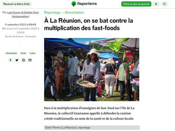 Ophélie Vinot Publications Séries / Archive Environnement — Politique — Société — Sport — Corporate Sélection de séries Web - france tv info - 10-06-2024 - elections europeennes Print - EWAG - Hors série Innovation vol 1 - mai 2024 Print - EWAG - Hors série Innovation vol 1 - mai 2024 Print - EWAG - Hors série Innovation vol 1 - mai 2024 Print & web - La Vie < n°4096 - 29-02-2024 - Crise à Mayotte : une histoire française print - boukan - n°14 > décembre 2023 - dossier autonomie énergétique - La canne à sucre au service de la transition énergétique Print - boukan - n°13 > septembre 2023 - dossier santé - la réunion face au fléau du diabète Web - reporterre - portfolio - 05-09-2023 - à la réunion, on se bat contre la multiplication des fast-foods print - fondation apprentis d'auteuil - avril 2023 - magazine à l'écoute - n°251 - EN IMAGES - Une journée avec Darice print - boukan - n°11 > février 2023 - À Mayotte, le combat contre les violences sexuelles est lancé print - boukan - n°11 > février 2023 - À la réunion, la mobilisation paye contre un projet de "puy du fou" à la sauce créole web - Mediapart - 28 janvier 2023 - Pour l'outre-mer, la réforme des retraites s'annonce cruelle web - ZEP - 07 décembre 2022 - Mayotte : pas d'argent, pas de considération print - Le Pèlerin - Les Cahiers - n°7293 > 08-09-2022 - commande - Portrait de Geneviève Crescence print - UNE - France Antilles Guadeloupe - 18-05-2018 - La Guadeloupe au 1er plan avec "Le cinéma en conquête" print & web - France Antilles Guadeloupe - 17-05-2018 - Gary Dourdan, guest-star du Femi
