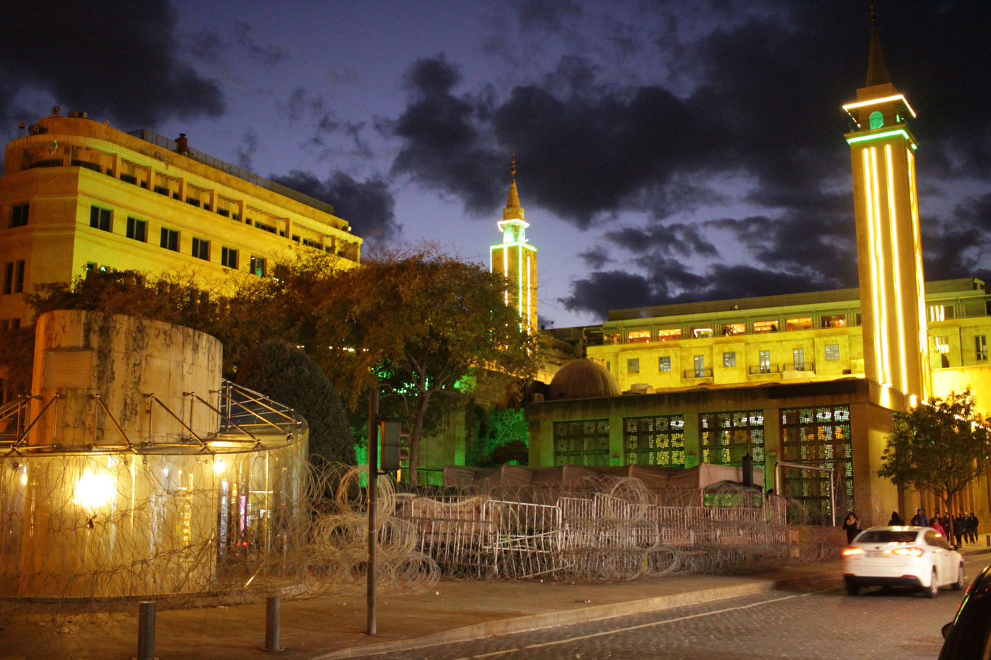 Dès le premier contact avec les rues de Beyrouth, on est frappé par la dense cohabitation des tours ultra modernes et sécurisées avec des vieilles résidences surpeuplées et délabrées. Par la proximité des mosquées et des églises, comme Al Amin et Saint Georges dont les minarets et clochers se dressent pointant le ciel avec orgueil. Par des traces de la guerre civile (1975-1995) encore visibles: des maisons criblées d'impacts de projectiles variés au milieu de quartiers résidentiels où la vie a repris ses droits. Puis on sent un vent de contestation sur les graffitis, une tension palpable à l image du Parlement libanais barricadé au centre de la ville.