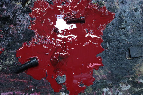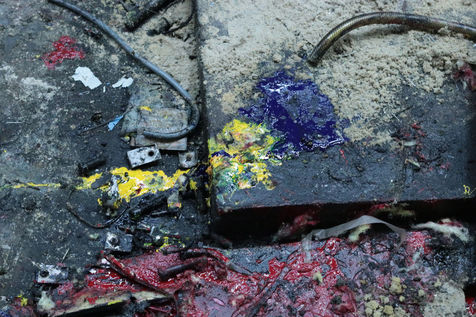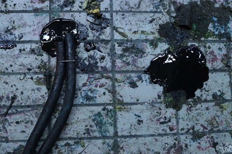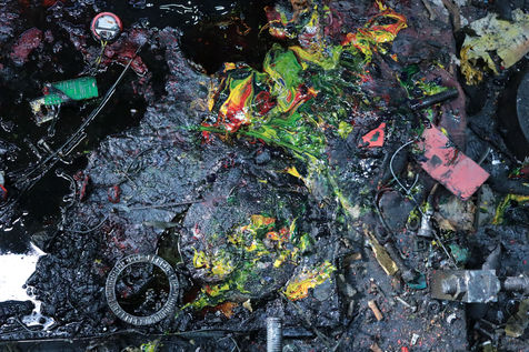 A printing plant under demolition is like a huge crime scene. Ink from the presses torn apart runs like blood on filthy floors and mixes up with bolts, wire, metal pieces, pipes...Le Monde printing plant was demolished between 2015 and 2017. This series treats the abstract part of the destruction of an industrial facility of another era and symbolises the evolution of the press. Since then, the French newspaper of reference is printed with other national dailies at an external printing plant.