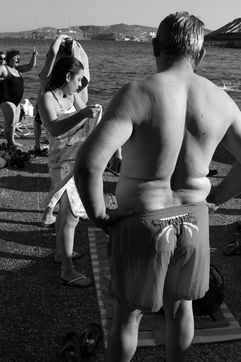 Since antiquity, the Greeks entertain a very special relationship with the sea. The sea has nourished tales for children, all the dreams for overseas journeys. She has knitted the History of this nation, since Homer and through centuries. The sea and Greece are inseparable and not only for sailors. Aegean, Ionian and the sea of Crete with thousands of islands are what is the river Gange for the Hindu. During my recent trips to my country, I made this photo documentary on the bodies of bathers of all ages and built to show this link between water and my people.