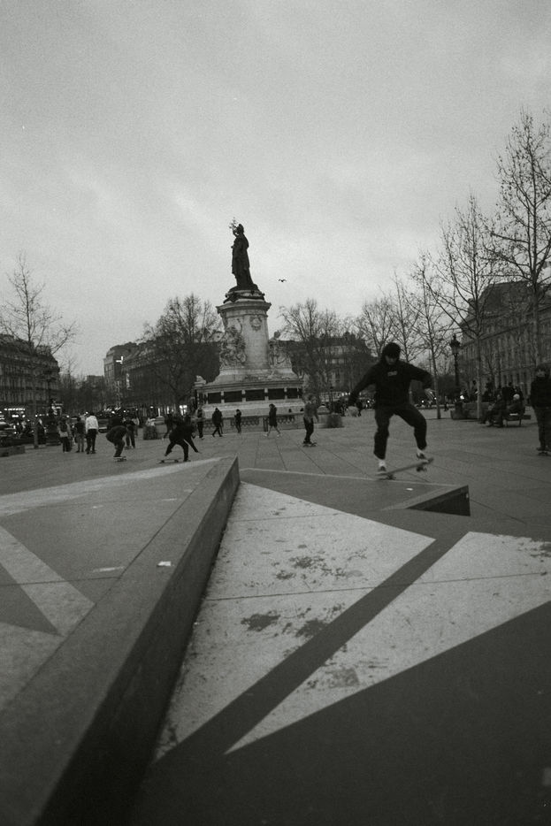 La Place de La République, au coeur de Paris, est le lieu de manifestations, de concerts et de rassemblements de toute sorte. Il est aussi un de principaux rendez-vous des skaters venant de tous les quartiers de la métropole pratiquer leur technique et frimer. Cette série de photos argentiques faite avec une pellicule expirée, a été réalisée trois mois avant que la crise du Covid bouleverse nos vies. Ces images d une jeunesse insouciante et libre symbolisent pour moi la vie d avant et sont la promesse de meilleurs jours à venir.