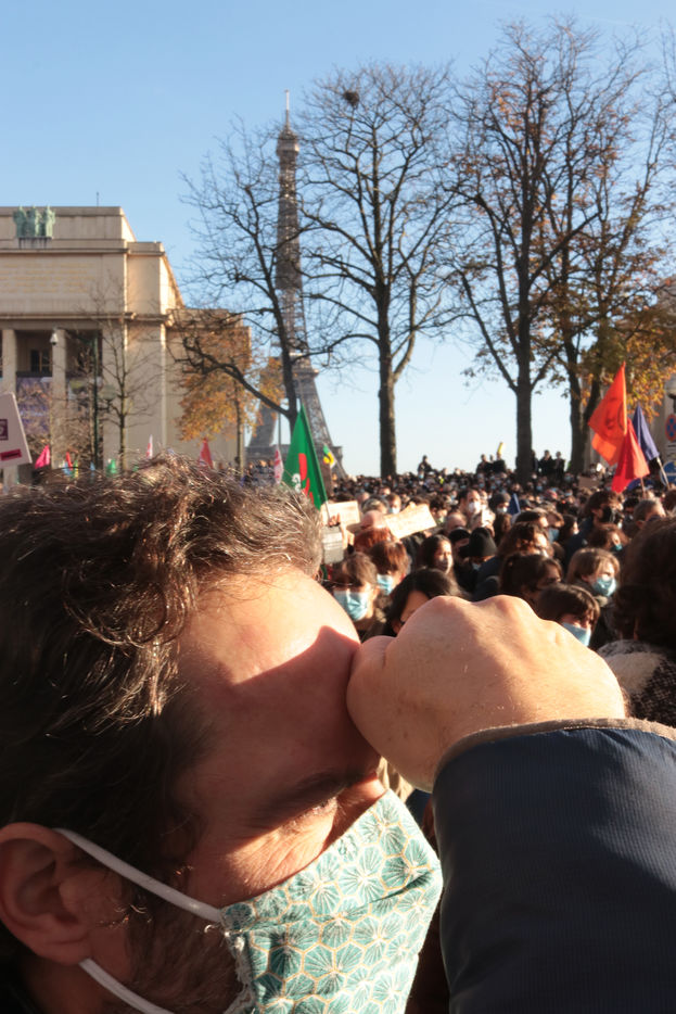 A Paris, un rassemblement sur la place du Trocadéro à l appel de syndicats de journalistes, des associations Ligue des droits de l homme et Amnesty France a réuni plusieurs milliers de personnes contre le projet de loi «Sécurité Globale». L article 24 de ce projet , adopté par l Assemblée nationale vendredi soir, prévoit des peines « d un an d emprisonnement et de 45 000 euros d amende » pour la diffusion des images non floutées d un policier ou d un militaire « dans le but manifeste qu il soit porté atteinte à son intégrité physique ou psychique ».
