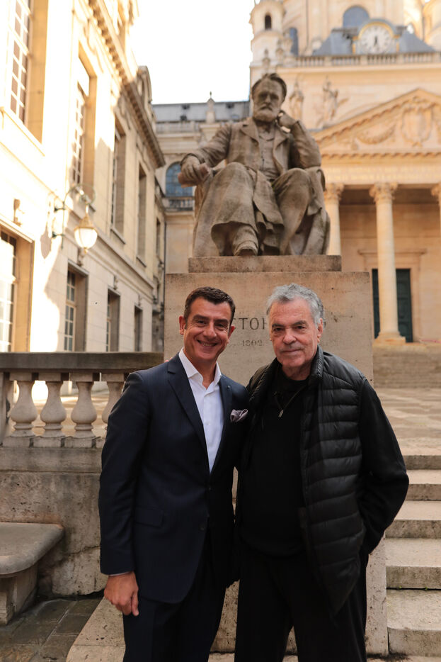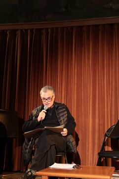 Amos Gitai, film director born in Israel, known all over the world and pacifist photographed at Sorbonne Université where he took part at an event in Honor of Greek Poet Constantin Cavafy. Amos Gitai is also a critic of the policy of Benyamin Netanyahou Government in Israel and particularly of the war his country has engaged in the Middle East. Amos Gitai has directed several films and has received many distinctions at Mostra of Venice and Cannes Film Festival.