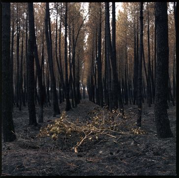 France, Saint-Magne, 2022-08-17. Forest of Saint Magne after the fire nicknamed "Landiras 2" by the firefighters which broke out on Tuesday August 9, 2022. The fire destroyed 7.400 hectares in a few days.