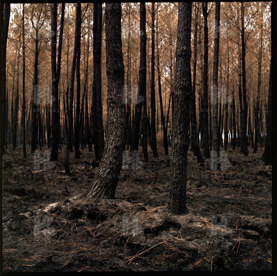 France, Saint-Magne, 2022-08-17. Foret de Saint Magne apres l incendie surnomme "Landiras 2" par les pompiers qui s est declare le mardi 9 aout 2022. Le feu aura detruit 7.400 hectares en quelques jours.