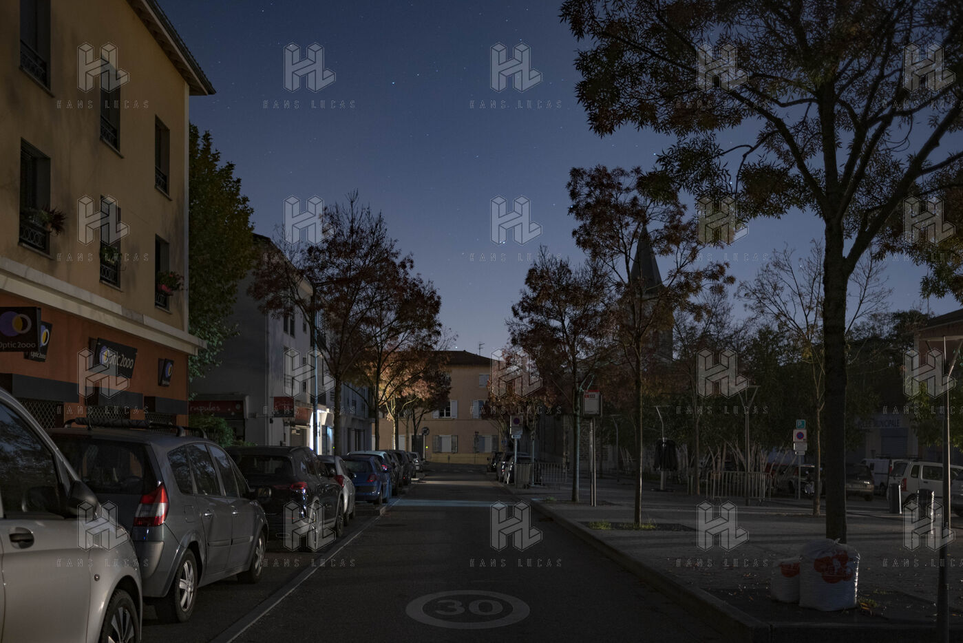 France, Francheville, 2022-11-03. The city of Francheville (14000 inhabitants), located in the Rhone, is experimenting with the extinction of public lighting. A test will be carried out on the whole city from Saturday, October 1st to Wednesday, November 30th, 2022. Thus, the 2051 points of light of the street will be turned off from midnight to 5am. Photograph by Pierre-Antoine Pluquet / Hans Lucas.