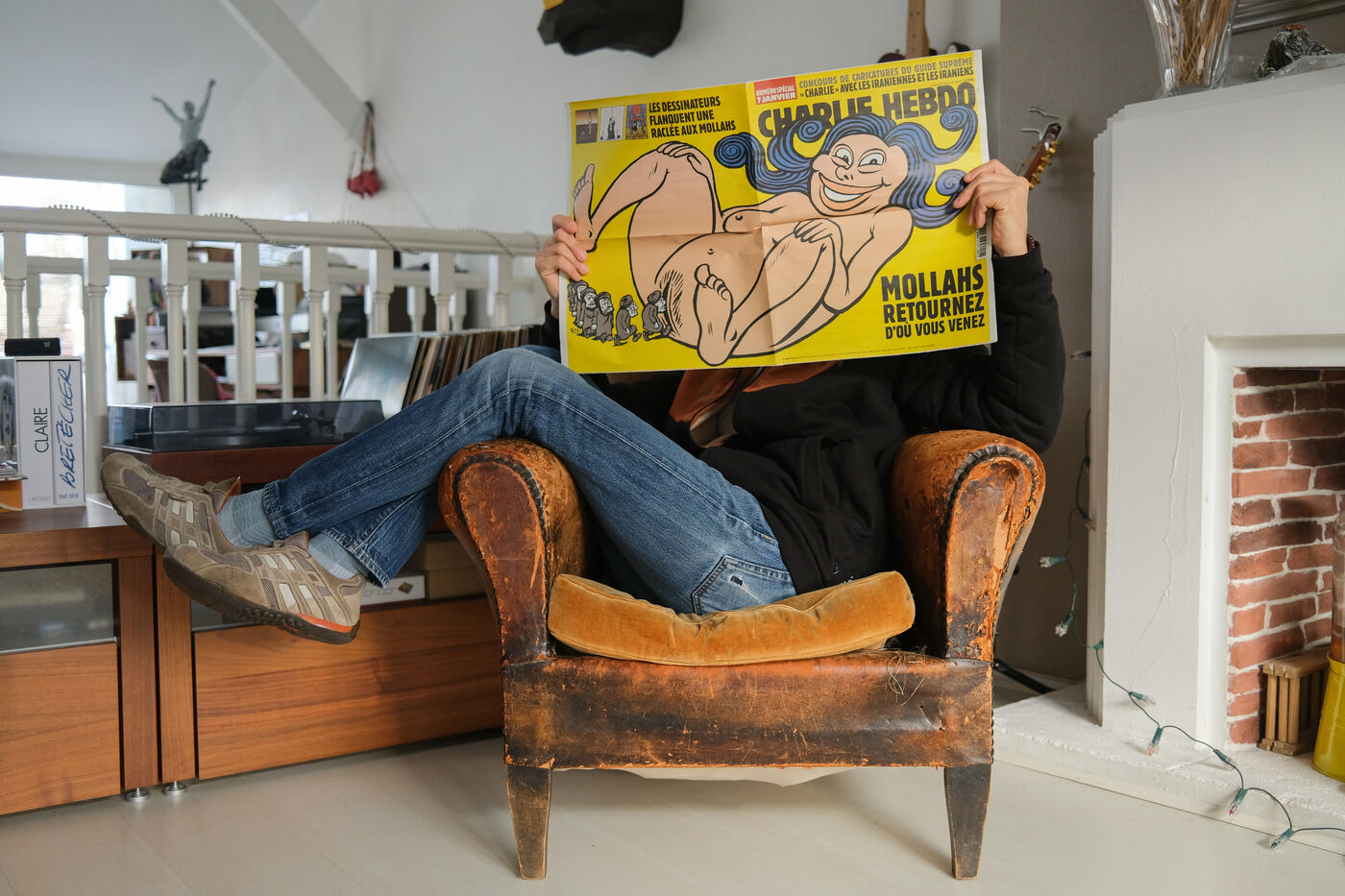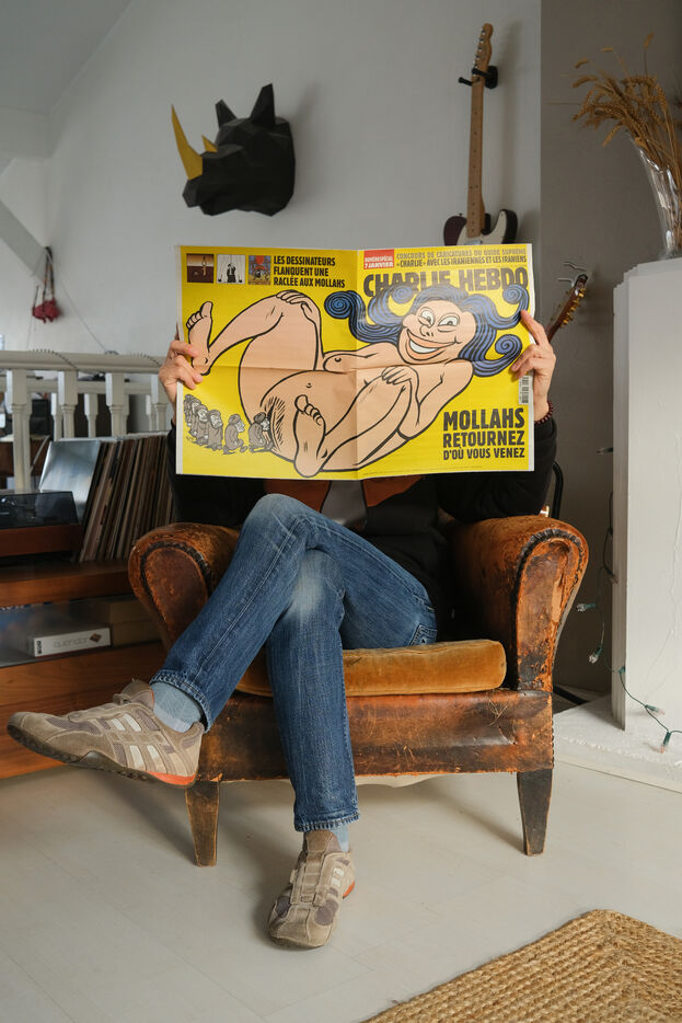 France, Toulouse, 2023-01-05. Le journal satirique Charlie Hebdo, en soutien au soulevement du peuple iranien, a publié des caricatures des mollahs dans son edition du 4 janvier. Répondant à l'appel du journal, ce sont des caricaturistes du monde entier qui ont adressé plusieurs centaines de dessins à la rédaction, mettant notamment en scène le guide suprême Ali Khamenei; la rédaction avait été elle-même la cible des attentats islamistes du 7 janvier 2015. Le régime iranien a protesté contre ces publications, et fermé l'Institut Français de Recherche, le plus ancien centre d'études français en Iran.