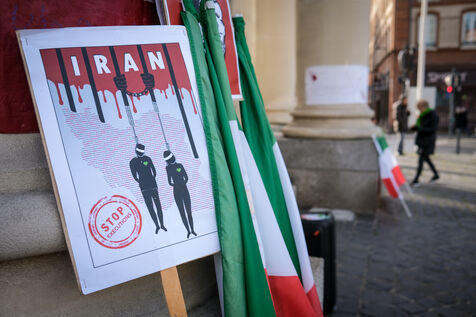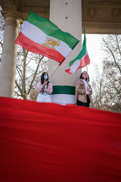 Toulouse, France, 2023-01-14. La diaspora iranienne de la ville se réunit toutes les semaines en soutien au soulèvement national. Depuis le 16 septembre dernier et la mort de Mahsa Amini, l'Iran connaît un mouvement de révolte (Femme Vie Liberté) inédit. Le régime en place procède depuis quelques semaines à une répression avec notamment des exécutions par pendaison de manifestants.