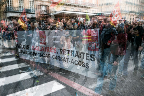Toulouse, France, 2023-01-19. Strong mobilisation in the streets against the government s pension reform. The government is presenting a bill aimed at extending the retirement age (64 years instead of 62), as well as the number of years required for full pension. All the trade unions have spoken out against this reform and have called for a massive demonstration. More than the mobilisation of the day, the government fears that this movement will last.
