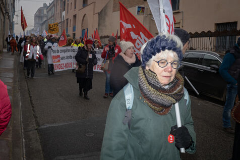 Montauban, France, 2023-02-07. Troisième journée de manifestation nationale contre la réforme des retraites. Suivant l'appel de tous les syndicats, et au moment où est débattu le projet de loi à l'assemblée nationale, la foule s'est données rendez-vous jusque dans les petites villes, comme ici à Montauban (60 000 habitants).