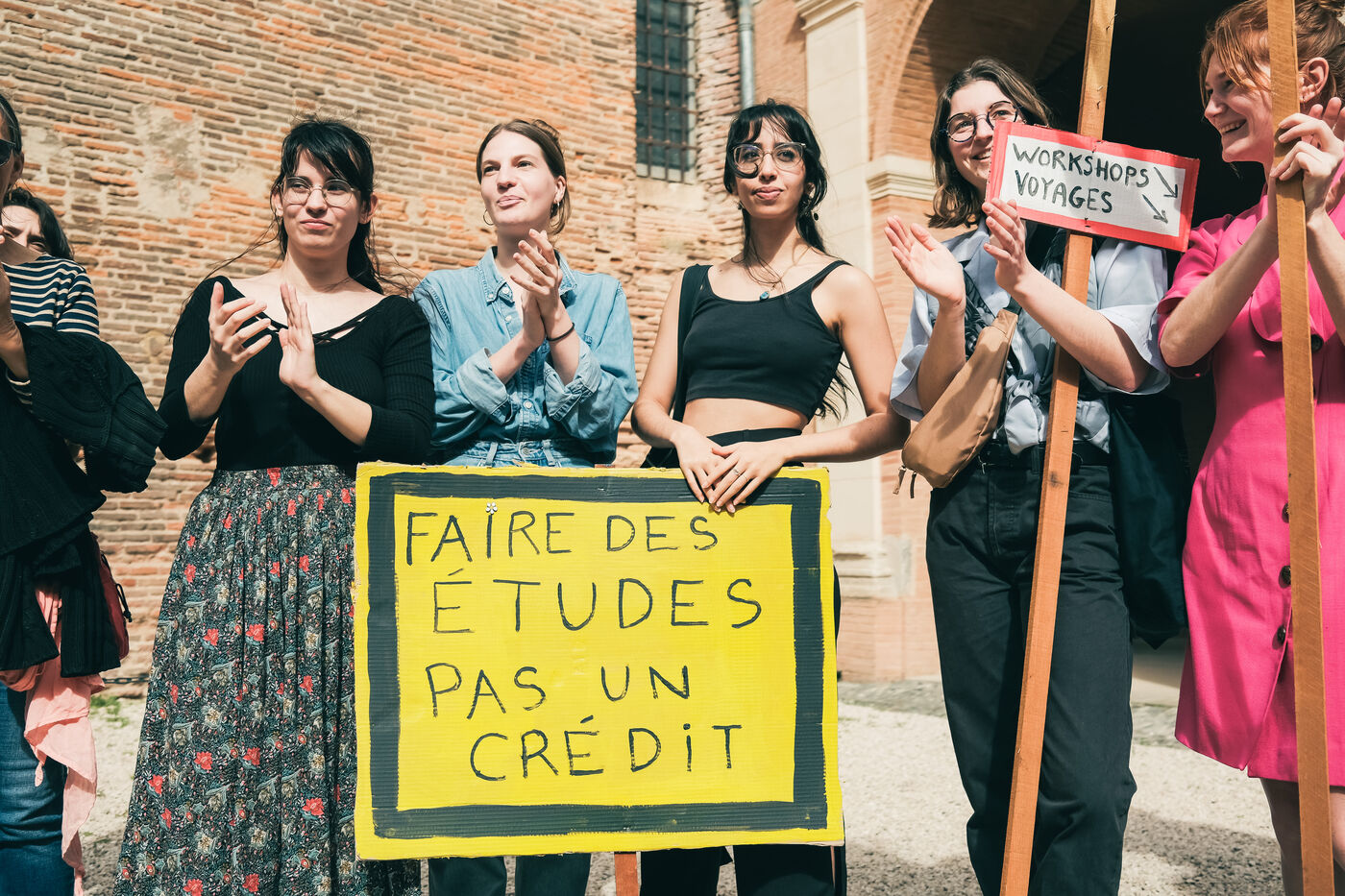 Toulouse, France, 2023-03-13. Les étudiants et personnels de l'ISDAT (anciennement Beaux-Arts) ont occupé les locaux de la DRAC Occitanie (Direction Régionale des Affaires Culturelle), représentant de l'Etat. En conflit avec leurs institutions, de nombreuses écoles d'arts, design, danse, musique ou encore architecture protestent depuis plusieurs mois contre des baisses budgétaires drastiques. Dans le cas de Toulouse, le budget 2022 serait inférieur à celui de 2012.
