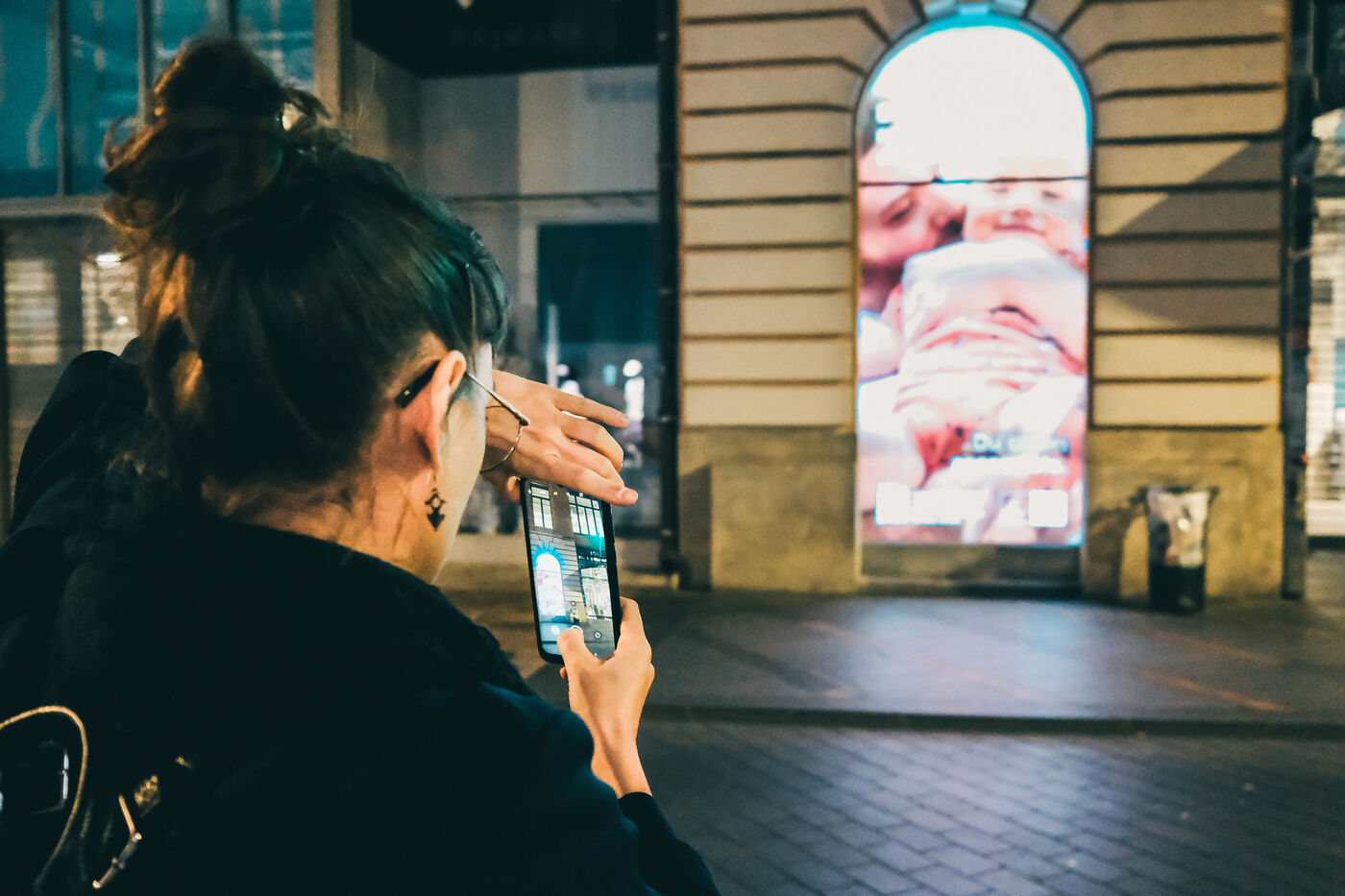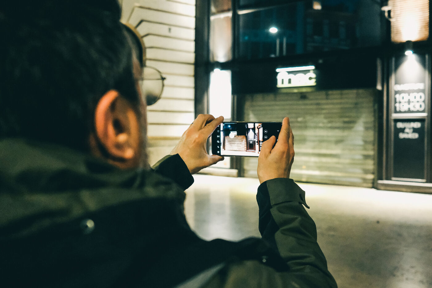 Toulouse, France, 2023-03-30. Citizens are committed to making shops aware of the need to switch off their signs at nightfall. Armed with smartphones, they go around the city and spot signs that are still lit. By logging on to lightsoff.fr, they can take a photo of the shop and attach it to a pre-written message, and then post a Google review. The owner is simply informed of the energy-saving measures to be taken by means of an awareness-raising message.