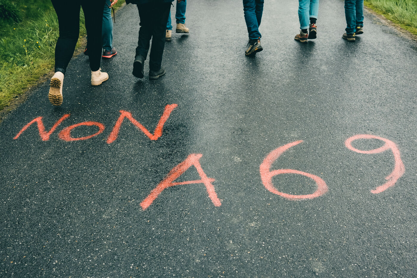Saix, France, 2023-04-22. A demonstration against the construction of the A69 Toulouse-Castres motorway brought together several thousand people at the call of various groups. Supported by the State and the Occitanie Region, the project initiated more than thirty years ago is the object of massive local opposition. According to them, the motorway would be an anachronistic construction site, replacing 400 hectares of agricultural land with bitumen and concrete, and for insufficient road traffic, little time saved and an exorbitant price. The opponents propose an alternative with the development of the existing N126 national road. The demonstration took place in a calm atmosphere without any disturbances; 800 gendarmes were deployed.