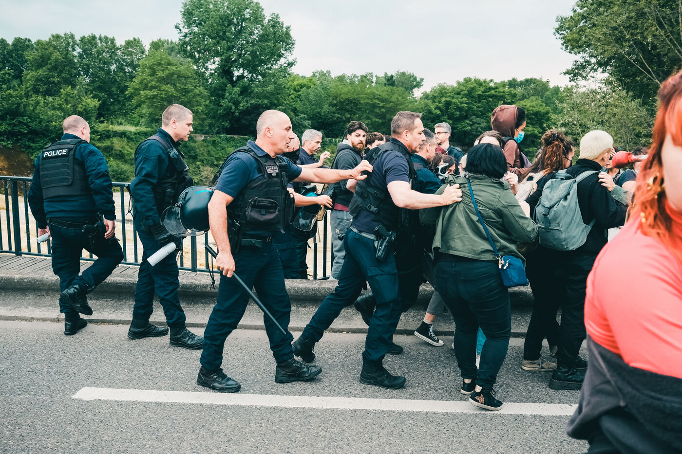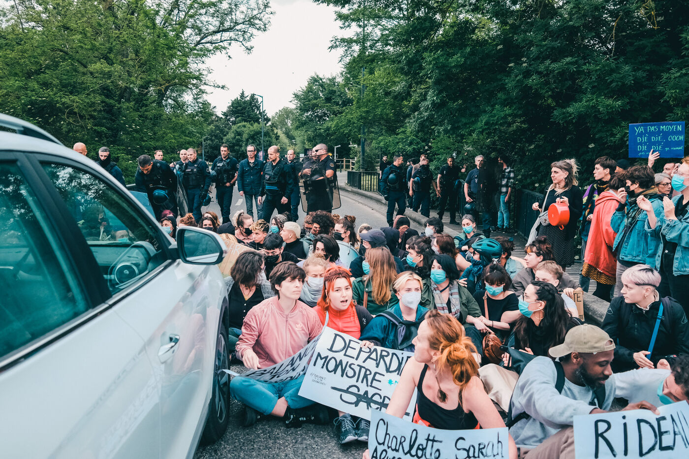 Toulouse, France, 2023-05-25. The arrival of actor-singer Gérard Depardieu was welcomed by a feminist protest rally. On tour in the country around the texts of the singer Barbara, the artist is accused by several people of sexual or gender-based violence. After an hour of blocking access to the performance hall, the police evacuated the demonstrators with tear gas.