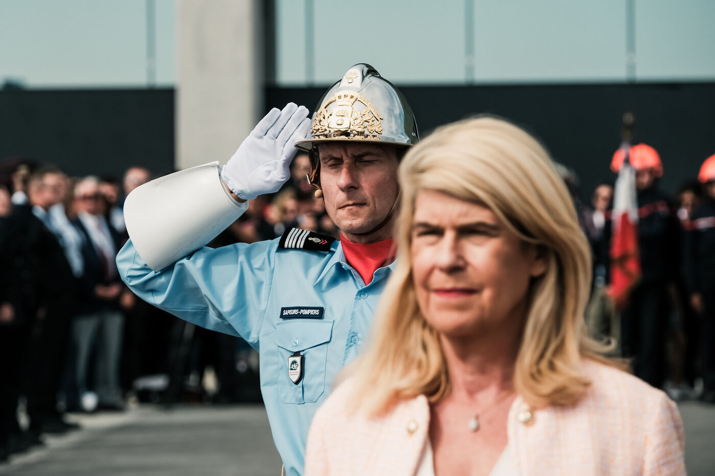 Aussonne, France, 2023-10-04. Pour leur congrès annuel, les Sapeurs-Pompiers français ont choisi d'investir le MEET, parc des expositions en banlieu de Toulouse. Durant cinq jours, les professionnels du feu pourront voir des démonstrations, approcher des matériels inédits ou assister à des conférences. La ministre des Collectivités territoriales et de la Ruralité a participé à la cérémonie d'inauguration du congrès.