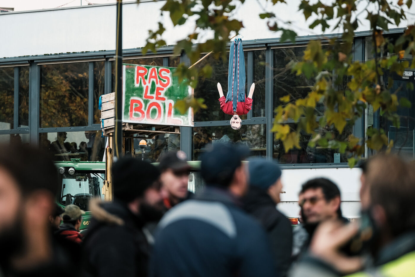 Toulouse, France, 2023-11-22. Un centaine de tracteurs des Jeunes Agriculteurs et de la FDSEA se sont rassemblés de tout le Sud-ouest pour manifester contre les taxes sur le fuel agricole, les délais de versements européens de la Politique Agricole Commune (PAC), mais aussi contre les normes toujours plus importantes et le prix des molécules d'intrants phytosanitaires. La réunion avec la Direction Régionale de l'Agriculture, de l'Alimentation et des Forêts (DRAAF) a été infructueuse.