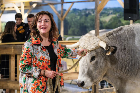 Aussonne, France, 2023-12-15. Le 18ème salon régional de l'agriculture REGAL a été inauguré par Carole Delga, Présidente de la région Occitanie, accompagné de l'animateur télé, chanteur et humoriste Patrick Sébastien, à proximité de Toulouse. Cette manifestation présente en un même lieu tous les produits de l'agriculture, mais aussi de la mer, et veut promouvoir une alimentation durable et locale à travers sa marque régionale "Sud de France-l'Occitanie".