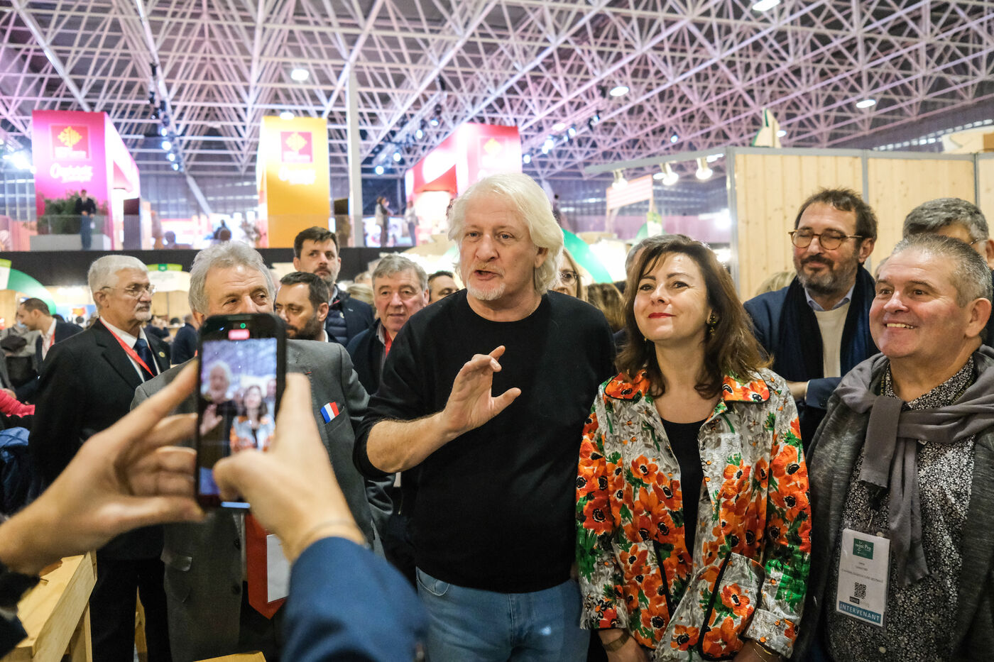 Aussonne, France, 2023-12-15. The 18th REGAL regional agricultural show was opened by Carole Delga, President of the Occitanie region, accompanied by TV presenter, singer and comedian Patrick Sébastien, near Toulouse. The event showcases all the products of the region's agriculture and seafood sectors, and aims to promote local, sustainable food through its "Sud de France-l'Occitanie" regional brand.