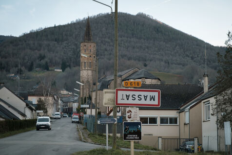 Pyrénées, France, 2023-12-27. De nombreux panneaux d'entrée ou sortie de villes et villages se retrouvent accrochés à l'envers : les agriculteurs des syndicats FDSEA et JA (Jeunes Agriculteurs) mènent depuis plusieurs semaines une opération "On marche sur la tête", pour dénoncer les taxes sur le fuel agricole, les délais de versements européens de la Politique Agricole Commune (PAC), mais aussi les normes toujours plus importantes et le prix des molécules des intrants phytosanitaires.