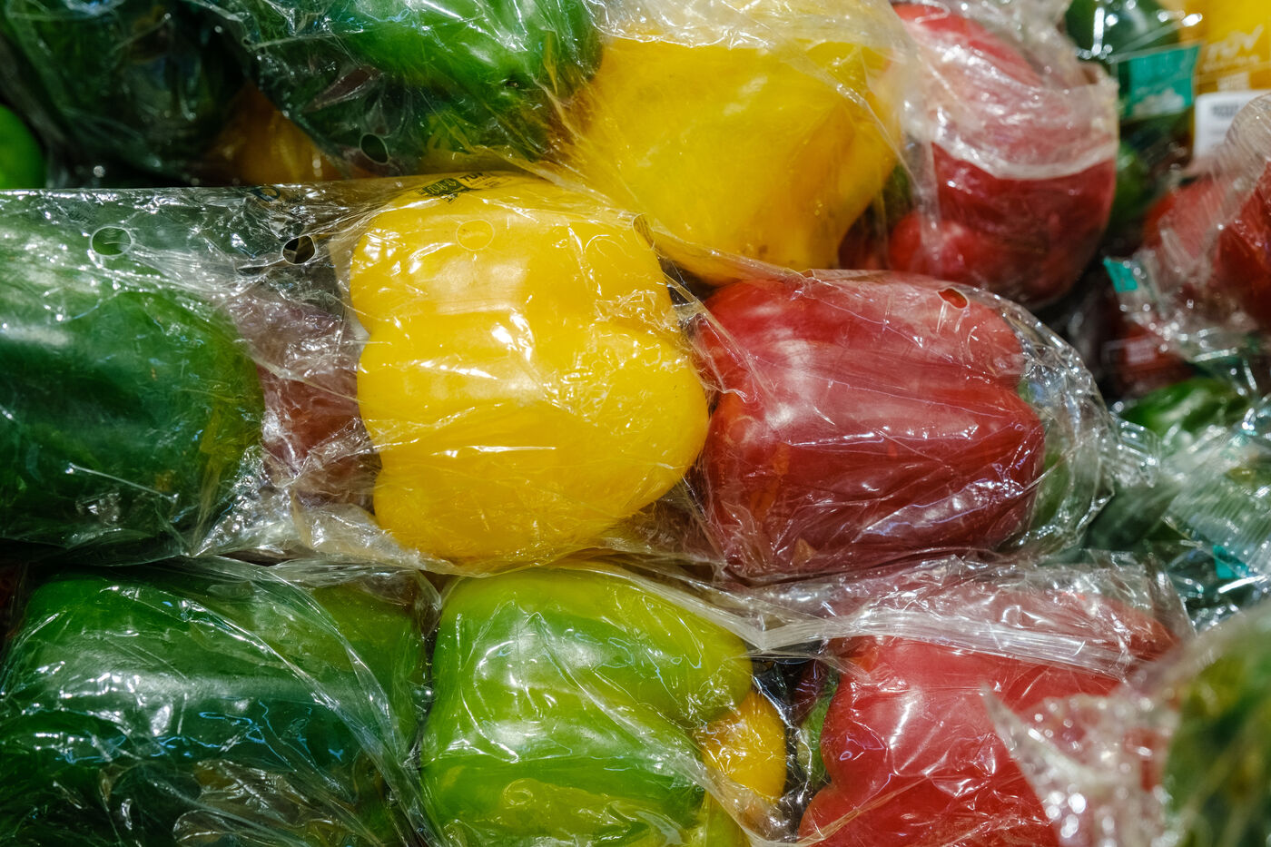 Fruits et légumes emballés dans du plastique