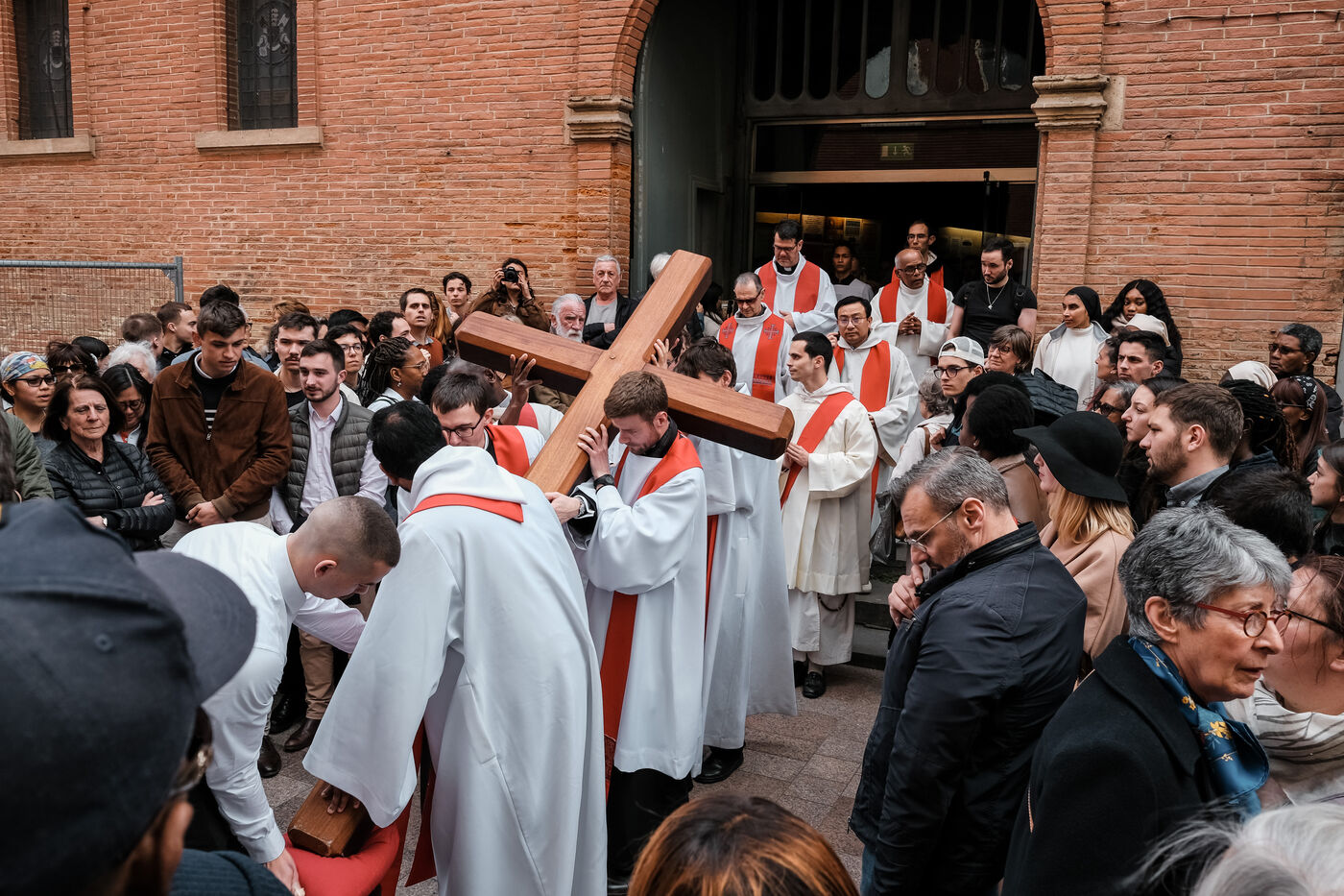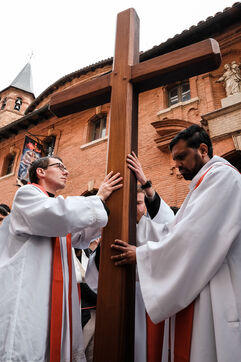 Catholic procession of the Stations of the Cross in the city streets for Good Friday in Toulouse, southwest France on March 29, 2024.