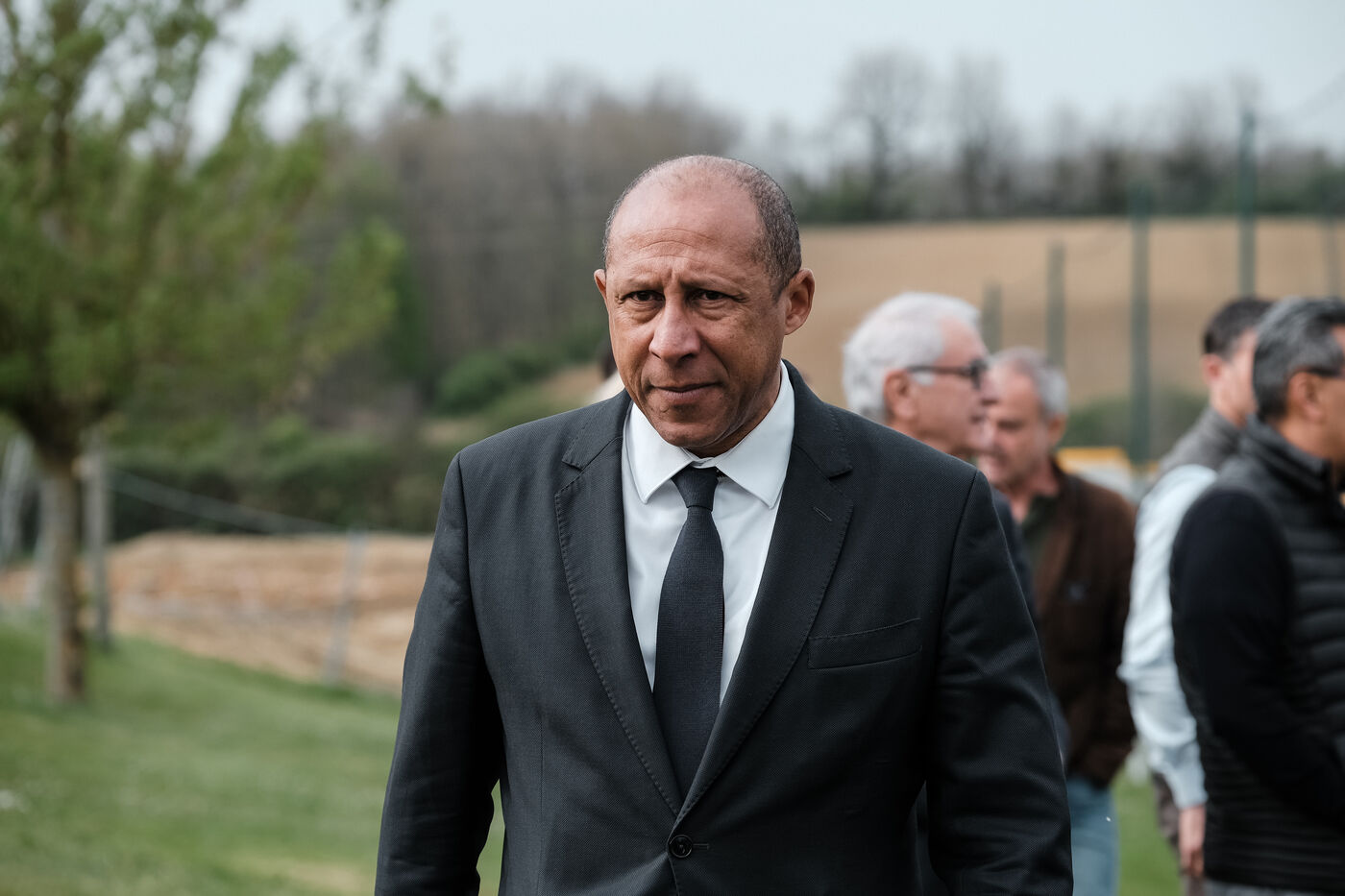 Pose de la 1ère pierre du Centre Sportif de la Ligue de Football Occitanie à Castelmaurou, sud-ouest de la France, le 6 avril 2024. Le nouveau bâtiment accueillera en 2025 un centre de formation pour les dirigeants, éducateurs et bénévoles, un Pôle espoir féminin et masculin, ou encore des stages et rencontres de football.