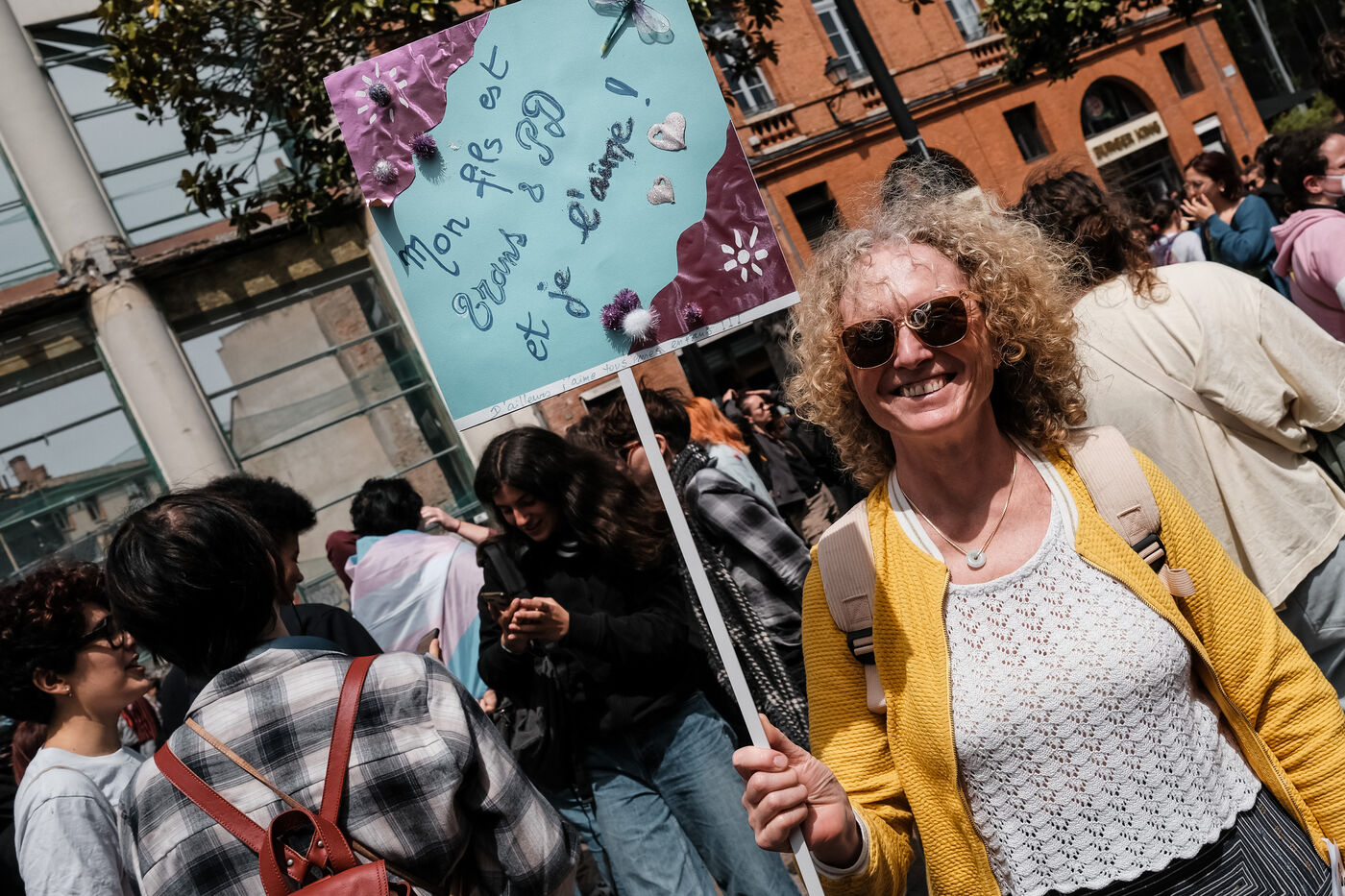 Rally organized by the Act Up association against transphobia in Toulouse, southwest of France, on May 5, 2024. Proposed laws put forward by right and far-right parties aim to prevent gender transitions of minors and legalize conversion therapy.