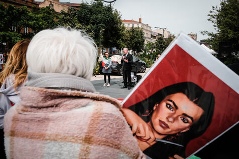 Rally organized by the Souliranation association against the death sentence of Iranian rapper Toomaj Salehi in Toulouse, southwest of France, on May 5, 2024.
