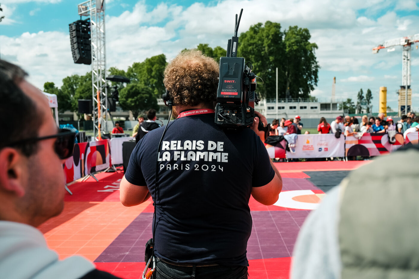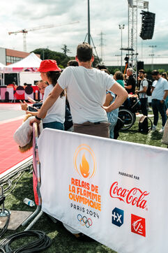 Illustration du village des Jeux Olympiques Paris 2024 lors de la 9ème étape du relais de la Flamme Olympique à Toulouse, sud-ouest de la France, le 17 mai 2024.